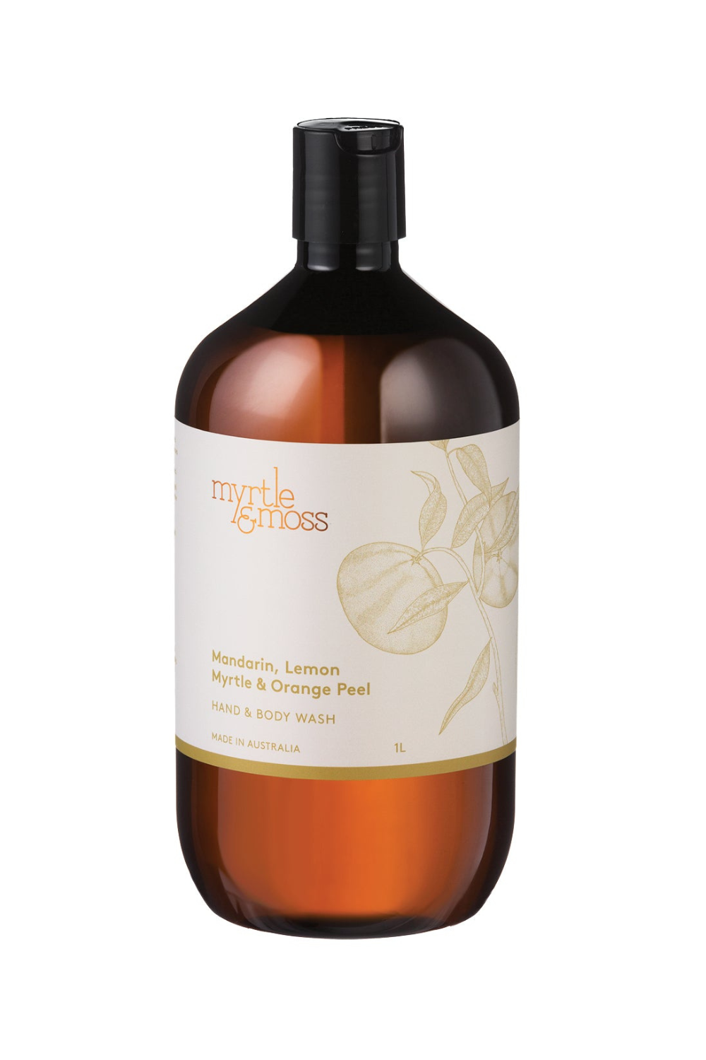 The popular Hand & Body Wash is available in a 1Lt refill. deal for topping up your bathroom, ensuite and kitchen bench Myrtle & Moss bottles.