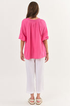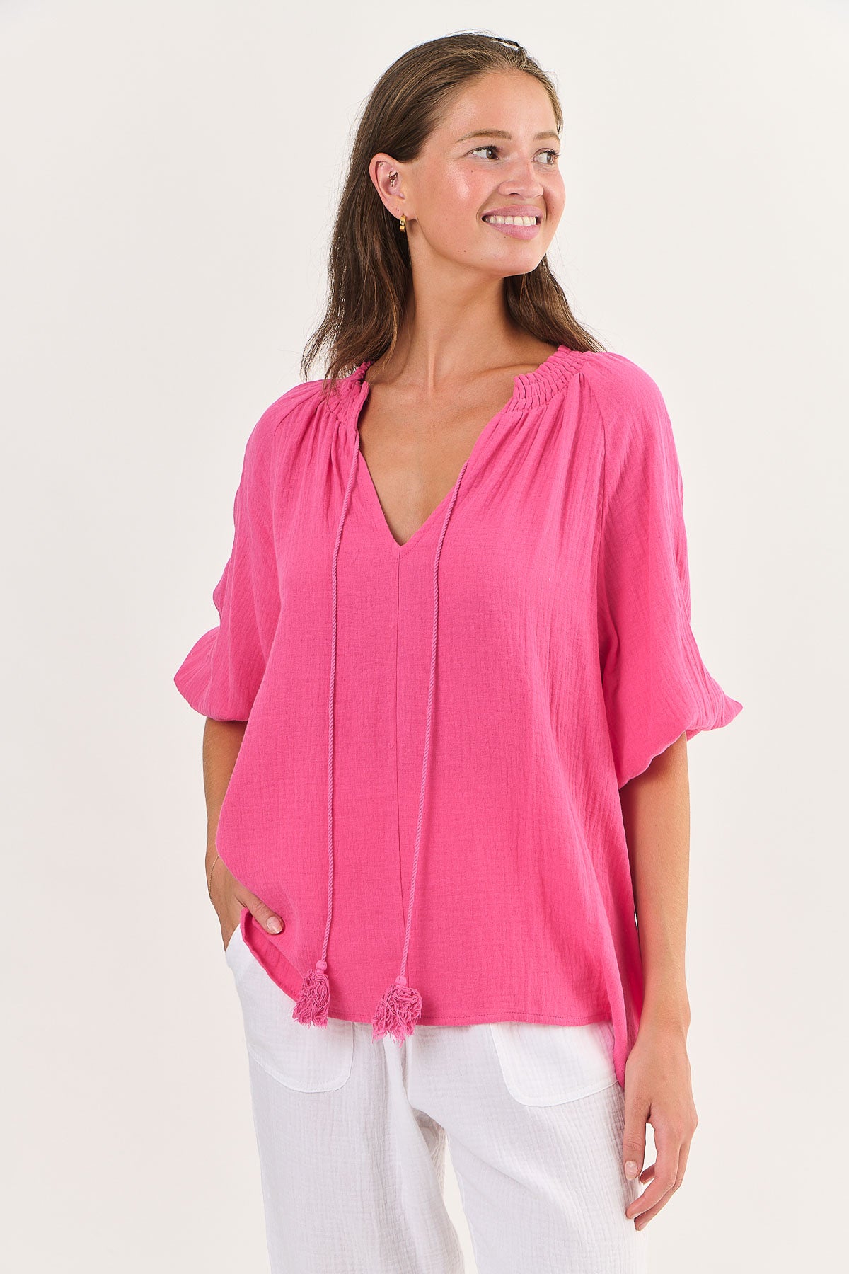 This gorgeous boho style top is fabricated in the softest cheesecloth like fabric. Perfect paired back with any of our denim or shorts.