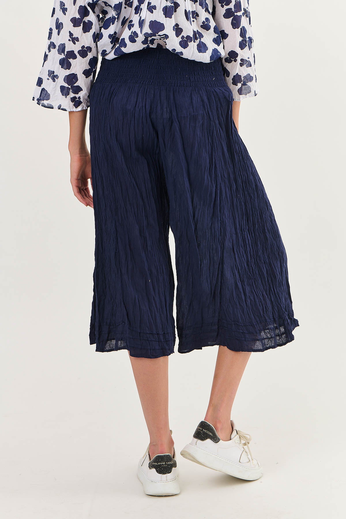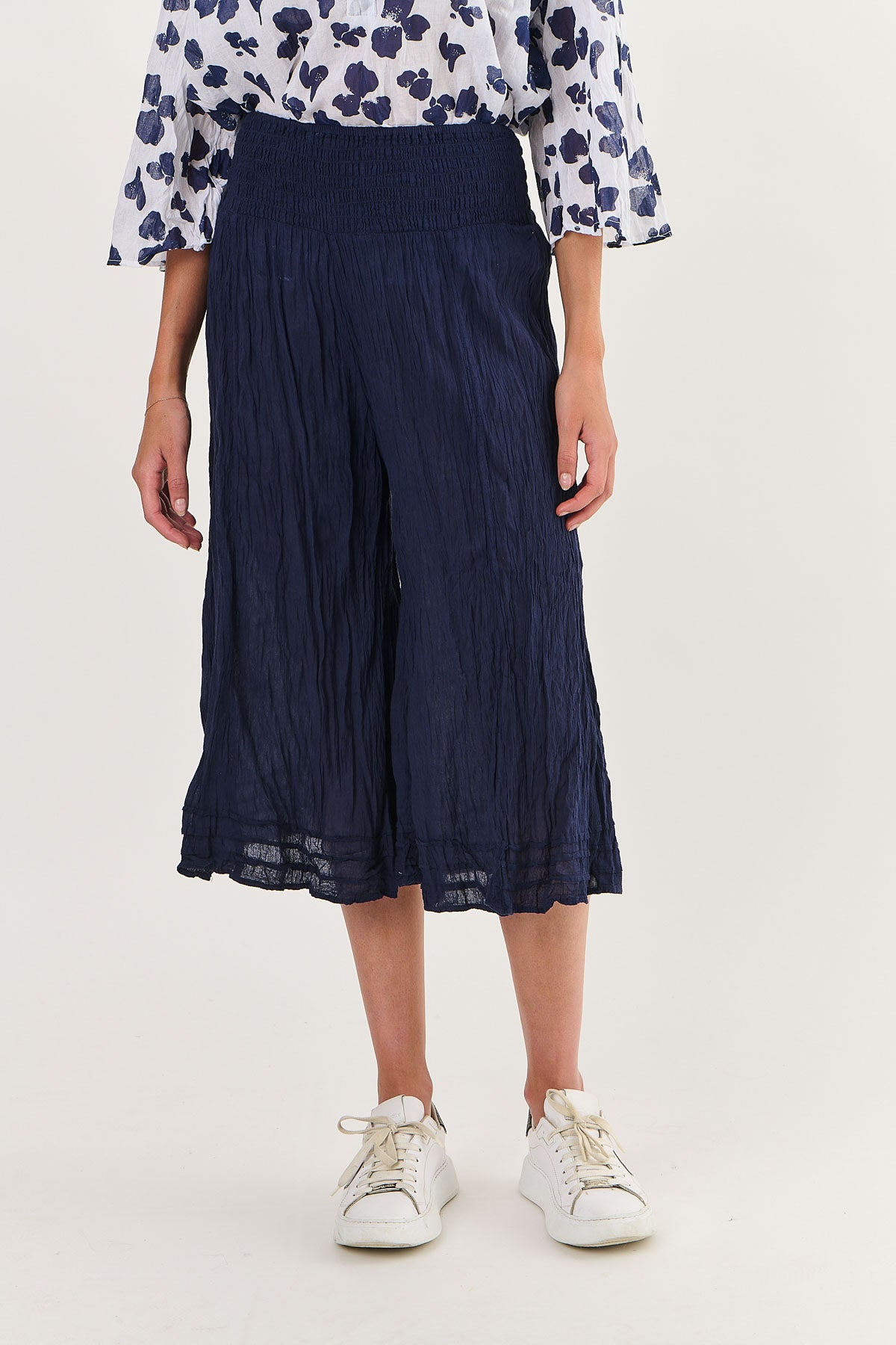 The O28 culottes are a cropped length, wide leg pant with delicate detailing at the bottom. Extremely comfortable and breathable, these crinkle cotton pants are the perfect travel companion, and the ideal iron-free piece to throw in your suitcase for your summer holidays. Style with sneakers for a busy day of sightseeing, or with your favourite sandals for a day by the pool.