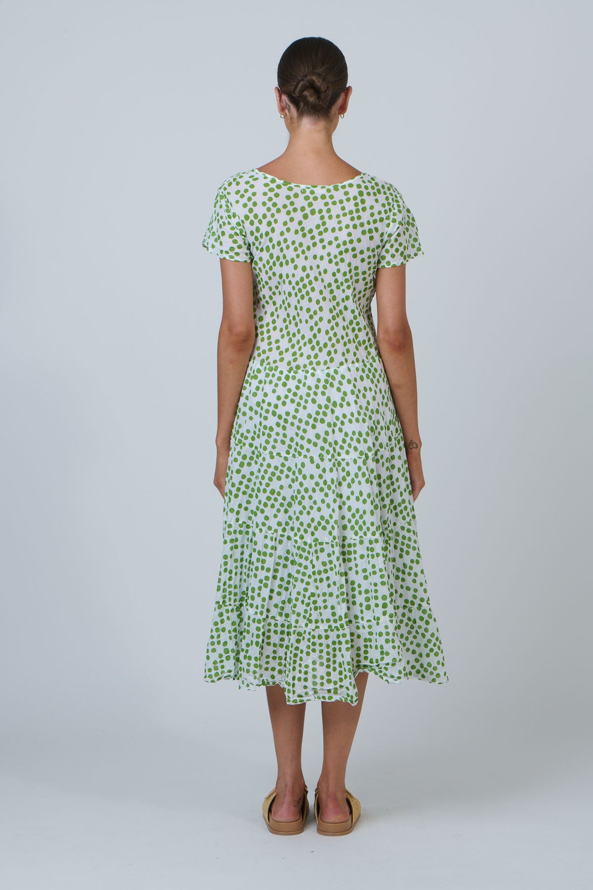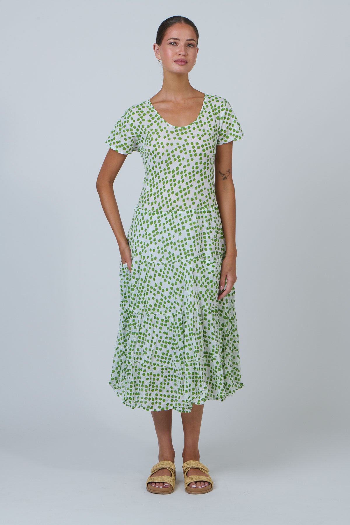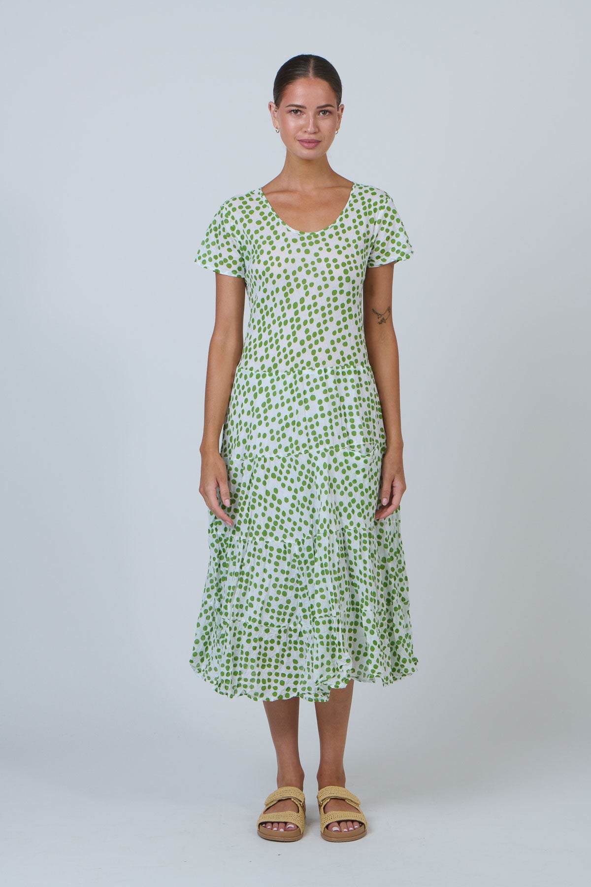 Light by design, this tiered O38 midi dress brings a quiet charm to warm-weather dressing. It features a soft scoop neckline and flutter sleeves, whilst the 100% crinkle cotton fabric adds texture without effort. The multi-tiered skirt adds shape and flow, with a relaxed silhouette that feels easy and unfussy—ideal for everything from weekend wanders to warm evening plans.
