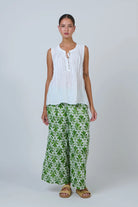 Relaxed sophistication in every step. The P125 wide-leg pants feature a flattering high waistband and delicate pleating detail, blending style with ease. Made from breathable 100% crinkle cotton, they offer comfort and movement, while the side pockets add a practical touch to the flowing silhouette.
