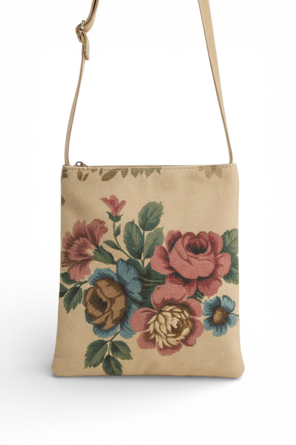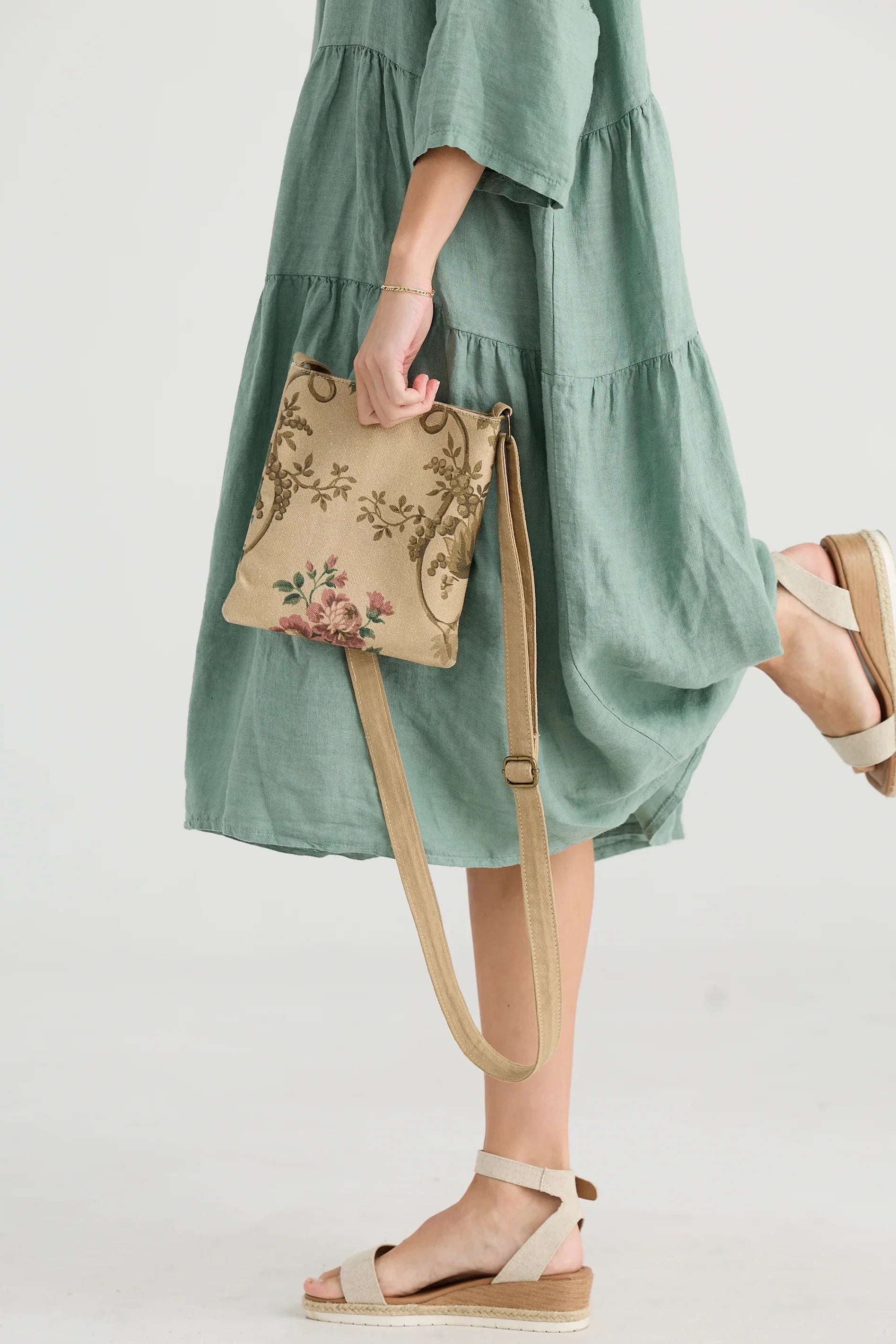 Kestrel Linen Crossbody Bag | Rose Bouquet