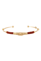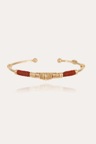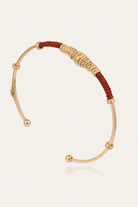 The Zizanie Bracelet is a luxurious 24k gold plated bangle accented with vibrant coloured thread wraps and polished golden ends. Its adjustable design ensures a perfect fit for any wrist, while handmade in Marseilles, France, it showcases exquisite artisan craftsmanship.