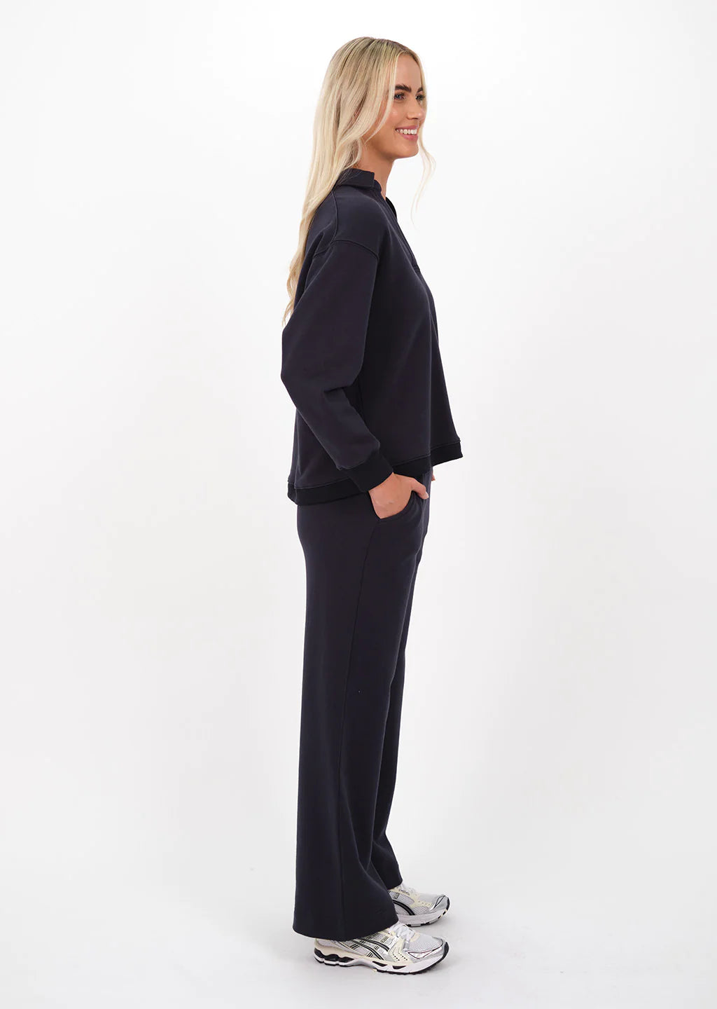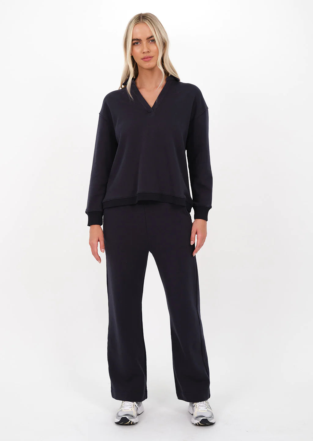 Meet the Titchie Haze Track Pant. Made from French terry, that’s super soft on the outside and cosy on the inside. These wide leg pants offer extra leg room for a comfortable, laid-back look. Designed to be worn high-waisted. They have an adjustable elastic waist band and tie. The perfect mix of casual and cool. For the ultimate set, pair with one of our matching French terry top THE MELA SWEATER in Midnight
