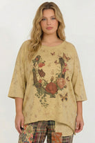 Embrace the free-spirited energy of Jaded Gypsy with this vintage-inspired floral top. Perfectly tumbled and soft to the touch, this piece feels like a cherished find from a countryside market. The sunny yellow hue and romantic rose print bring an instant warmth to your wardrobe, while the relaxed, oversized silhouette ensures you stay comfortable without sacrificing style. Whether you are pairing it with your favorite broken-in denim or layering it over a maxi skirt, this top is the definition of effortless, everyday bohemian luxury.
