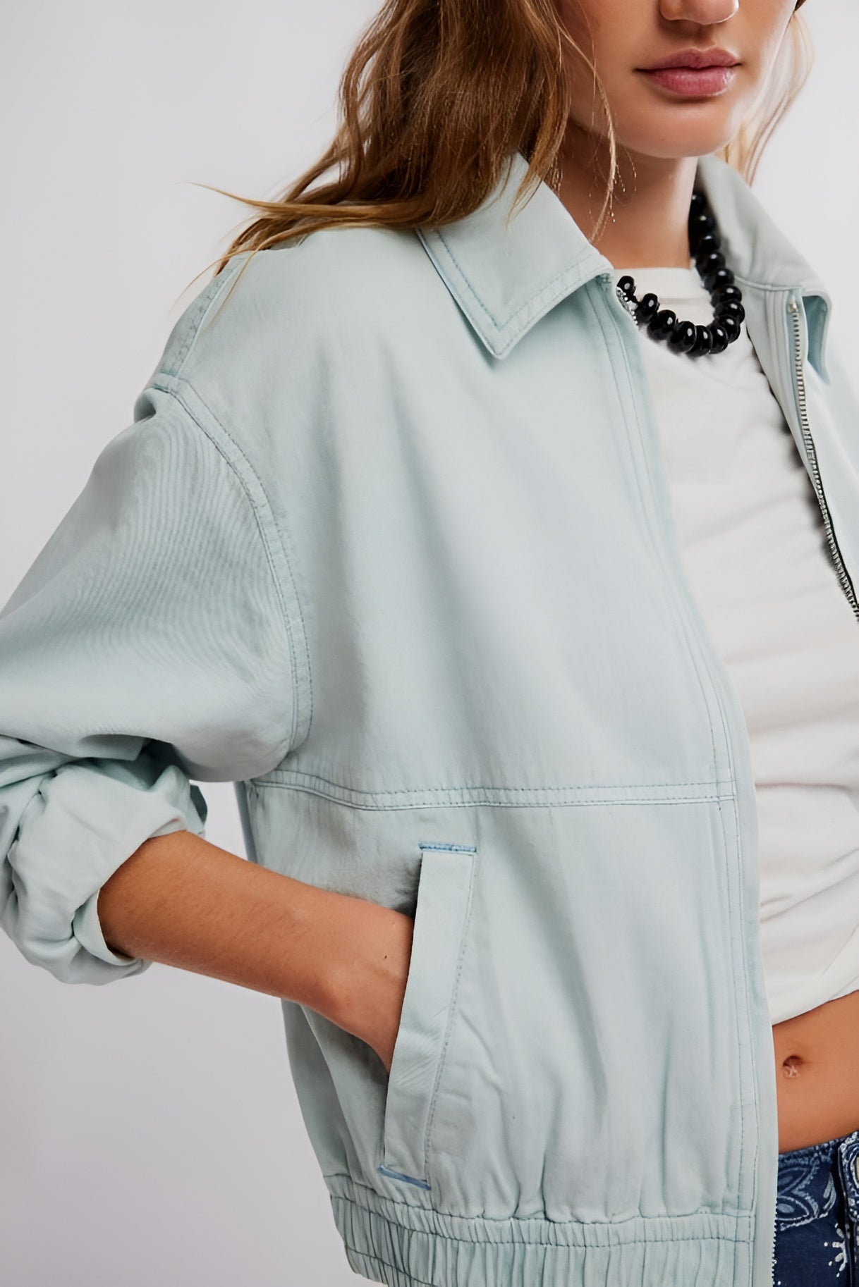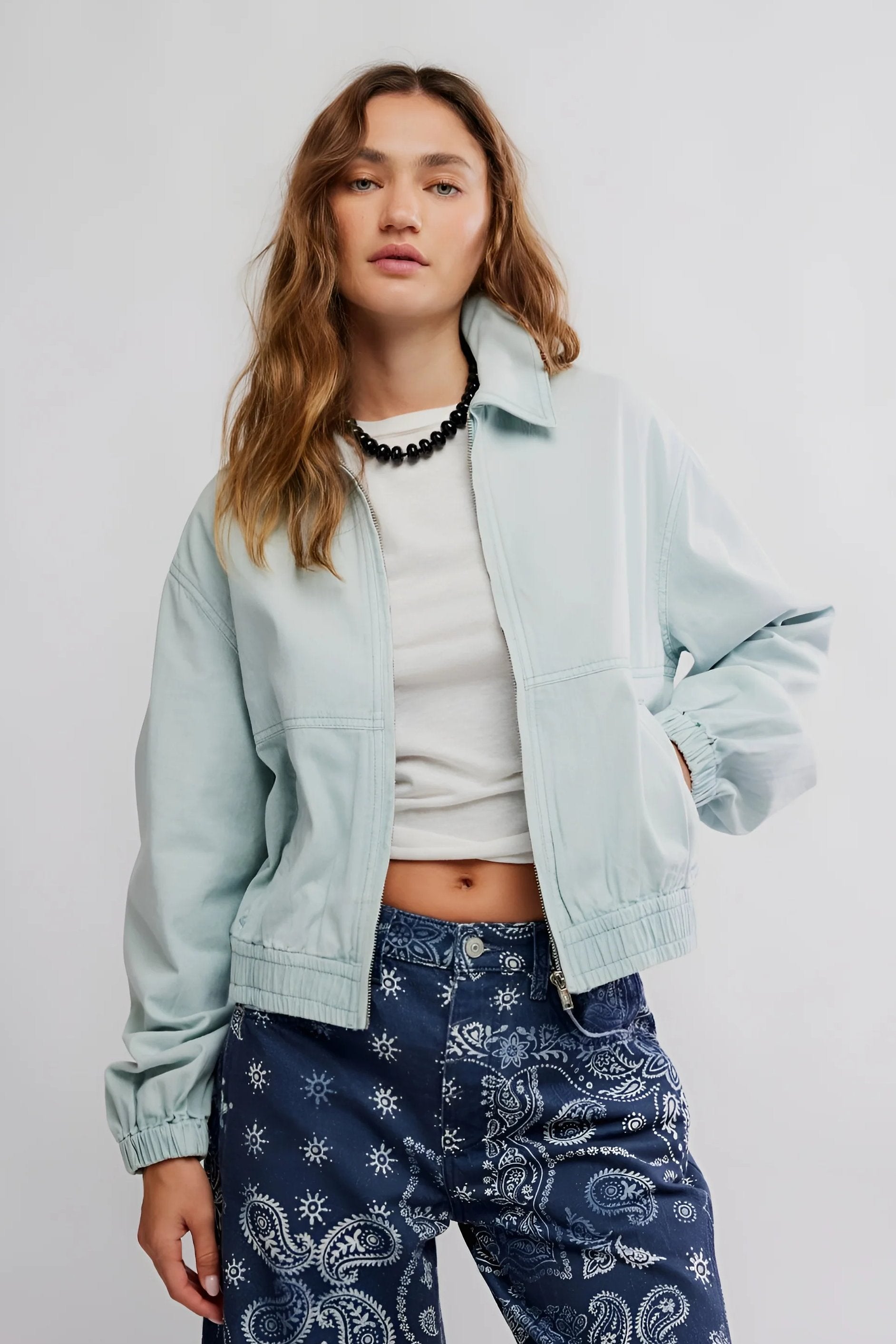 So essential for any-season layering, this cotton twill jacket from We The Free is featured in the perfect bomber-inspired style with a zip-front closure for an effortless addition to any outfit. Adds that too-cool touch to your look while keeping you cozy.