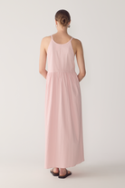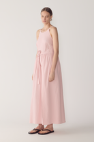This dress refines modern femininity through soft structure and tactile detail. Crafted from textured cotton, it features a sleeveless wrap silhouette with adjustable ties at both the centre front and discreetly at the centre back, allowing the fit to be customised to the body. The fluid wrap construction and gently falling skirt create subtle movement and a flattering line, balancing ease with quiet sophistication.