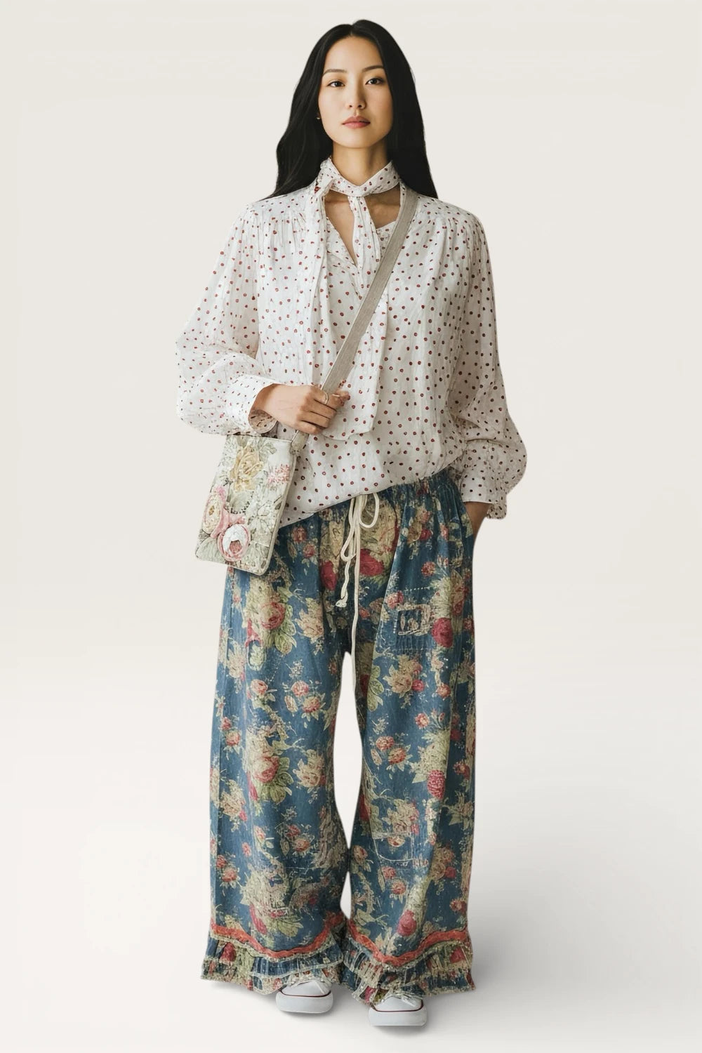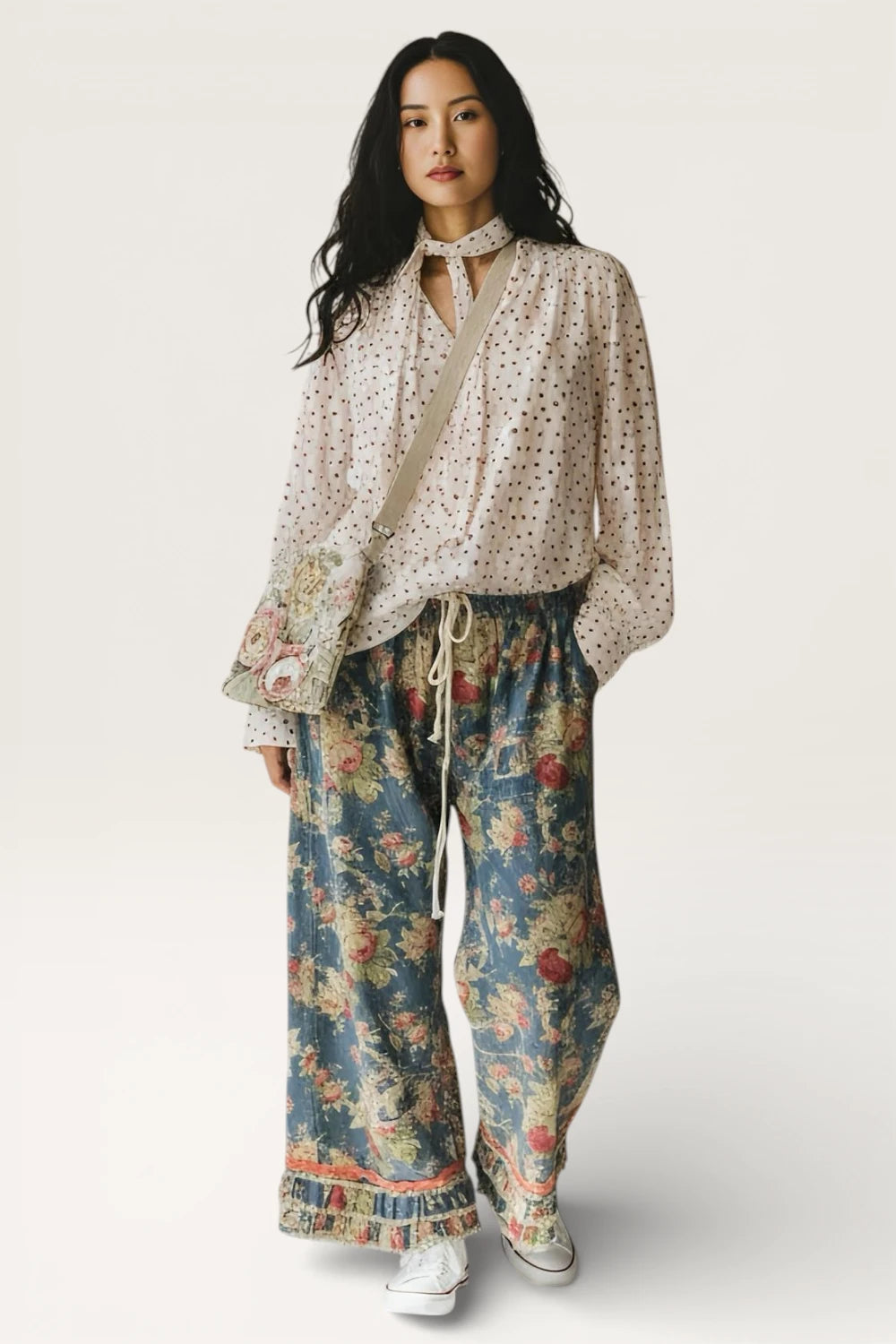 Vintage looking bloomers with hand stitching and patching that is intentional and not considered a fault.