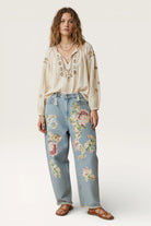 We have been waiting for these to turn up! Look no further for a pair of jeans that will take you anywhere you need to go. Floral patches and distressed features to jeans which are intentional and not deemed a fault of the fabric.