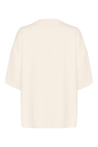 Off-white oversized T-shirt with a relaxed fit, dropped shoulders, and crew neckline. Finished with a small tonal logo embroidery at the chest.