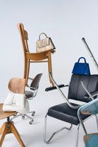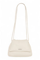 Soft bag with a slouchy silhouette and fold-over flap design. Features a comfortable strap and subtle metal logo detailing for an effortlessly modern finish.
