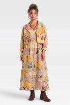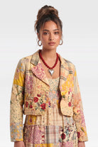 Embrace eclectic bohemian charm with the Joyous Garden Cropped Jacket by Jaded Gypsy. True to our vision of curating "wearable heirlooms," this vintage-inspired piece weaves together a beautiful, soulful tapestry of mismatched floral and plaid patchwork in warm, sun-faded hues of mustard, blush pink, and cream. Designed with a flattering cropped silhouette, it’s the perfect standout layer to throw over your favorite flowy slip dresses, rustic denim, or romantic maxi skirts. Whether you are building a deeply textured wardrobe or searching for that one perfect statement piece, this jacket brings lived-in artistry and effortless style to your everyday look.