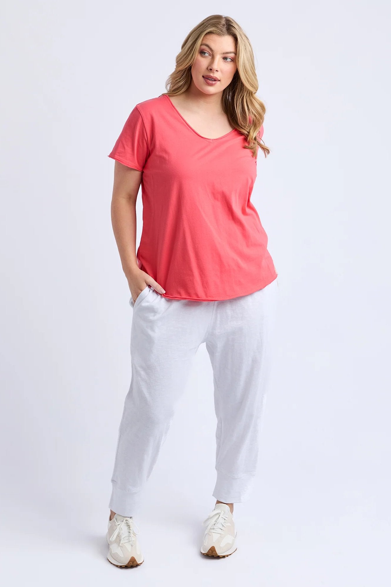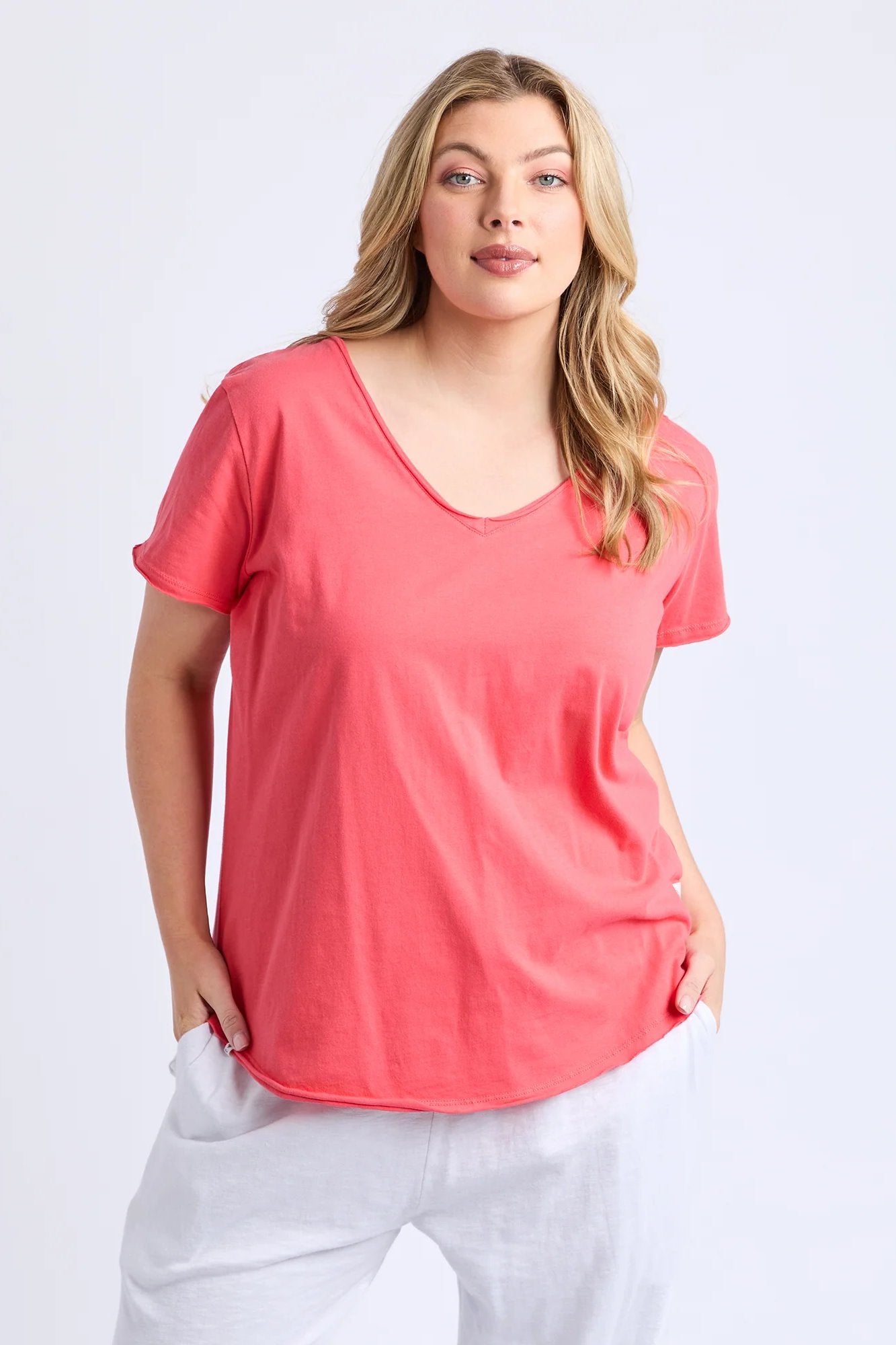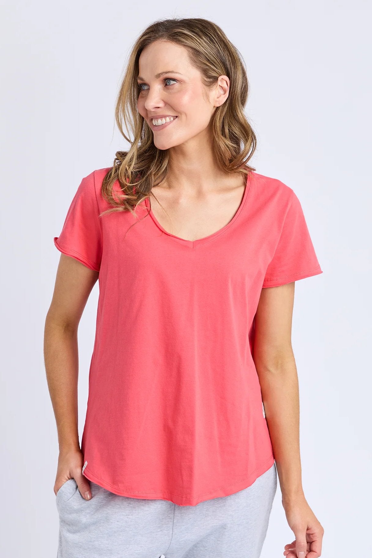 Dubbed as 'everyone's favourite tee' with good merit, the Pima Vee Tee made from pima cotton jersey is a must-have essential piece for your wardrobe. Raw edge detailing on the neckline and sleeve evokes a hint of uniqueness.