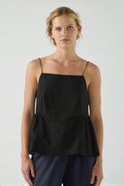 The River Top speaks to Foemina’s appreciation for architectural silhouettes and thoughtful detail. Featuring a clean square neckline and slender elastic shoulder straps, it is defined by gentle gathers at the waist and oversized buttons that punctuate the side seam. A modern essential that invites easy layering and considered styling.