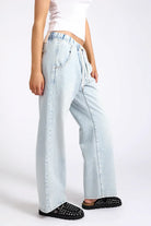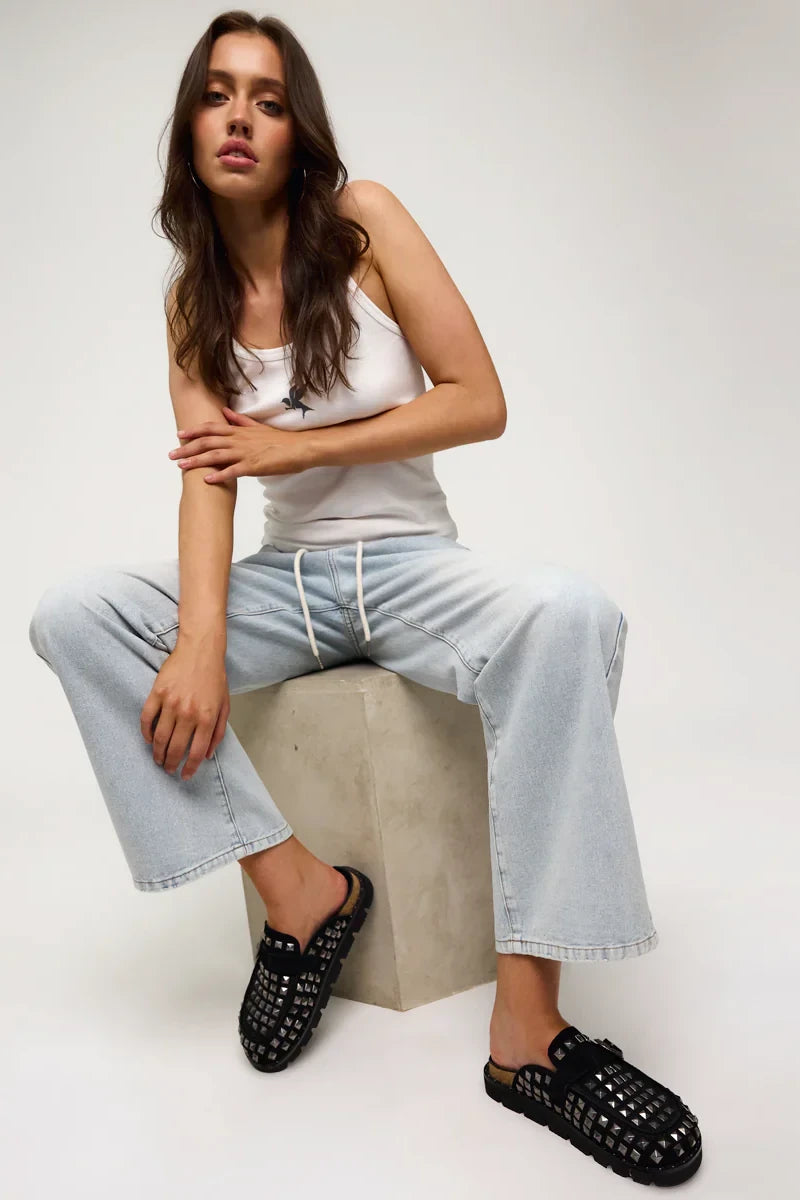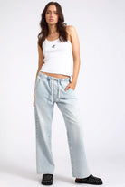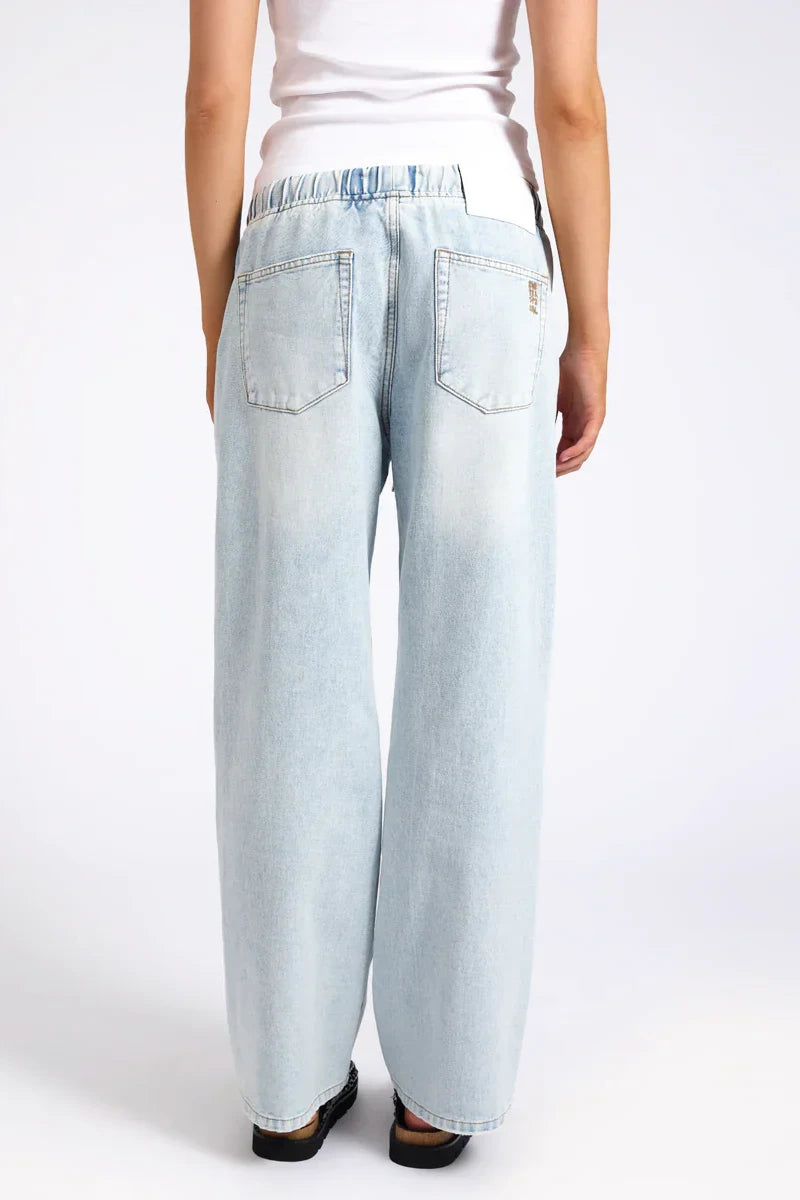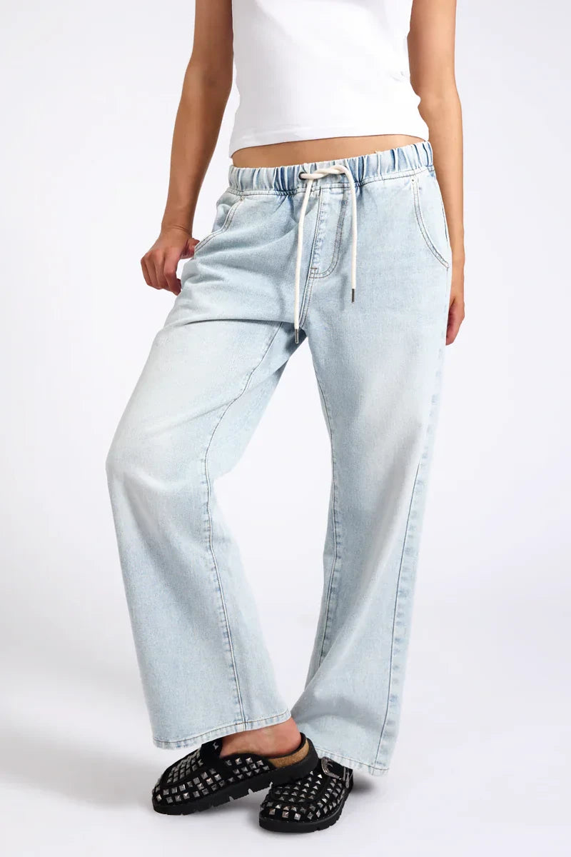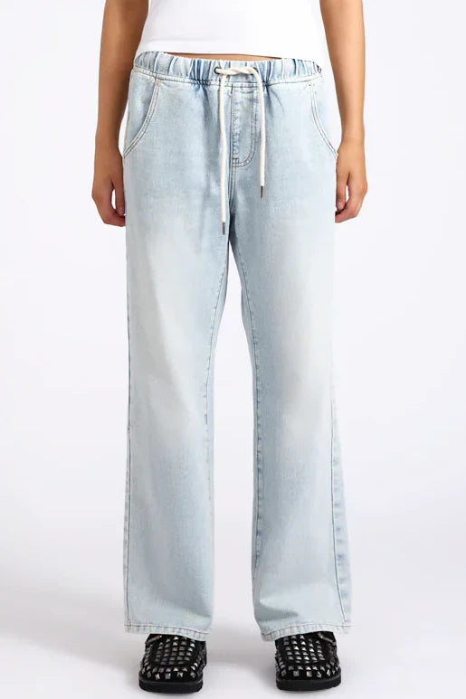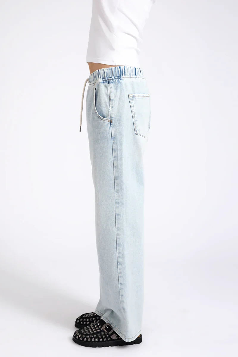 Roadhouse Mid Waist Wide Leg Drawstring Denim Jean | Blue Latte