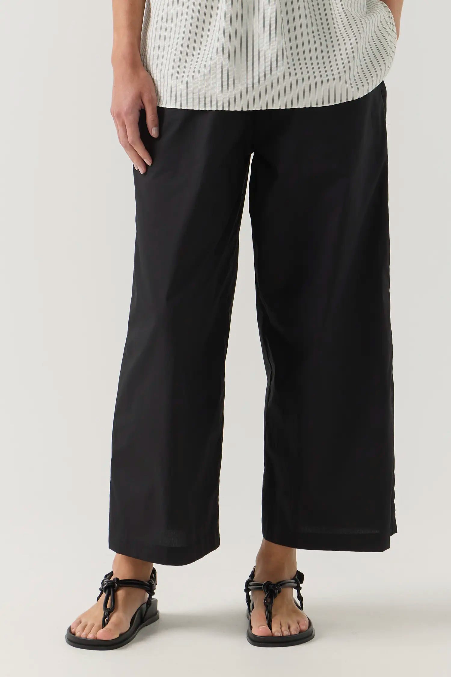 A refined essential designed with comfort in mind, the Sabine Pant is rendered in cotton poplin and features an elasticised front waistband for an effortless fit. Subtle ribbed detailing runs down the side seams, adding a sense of textural depth. Finished with functional touches including side seam pockets and back patch pockets, this wide-leg silhouette offers ease and versatility in equal measure.