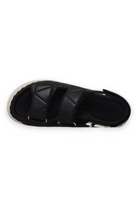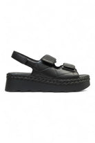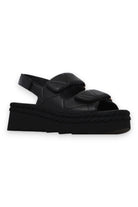 A new take on our best-selling platform sandal. Situation combines an ultra-light weight platform wedge sole with feature sole plait wrap. Featuring cream leather with quilted detail on puffy padded dual velcro straps across the foot and an adjustable velcro slingback heel strap.