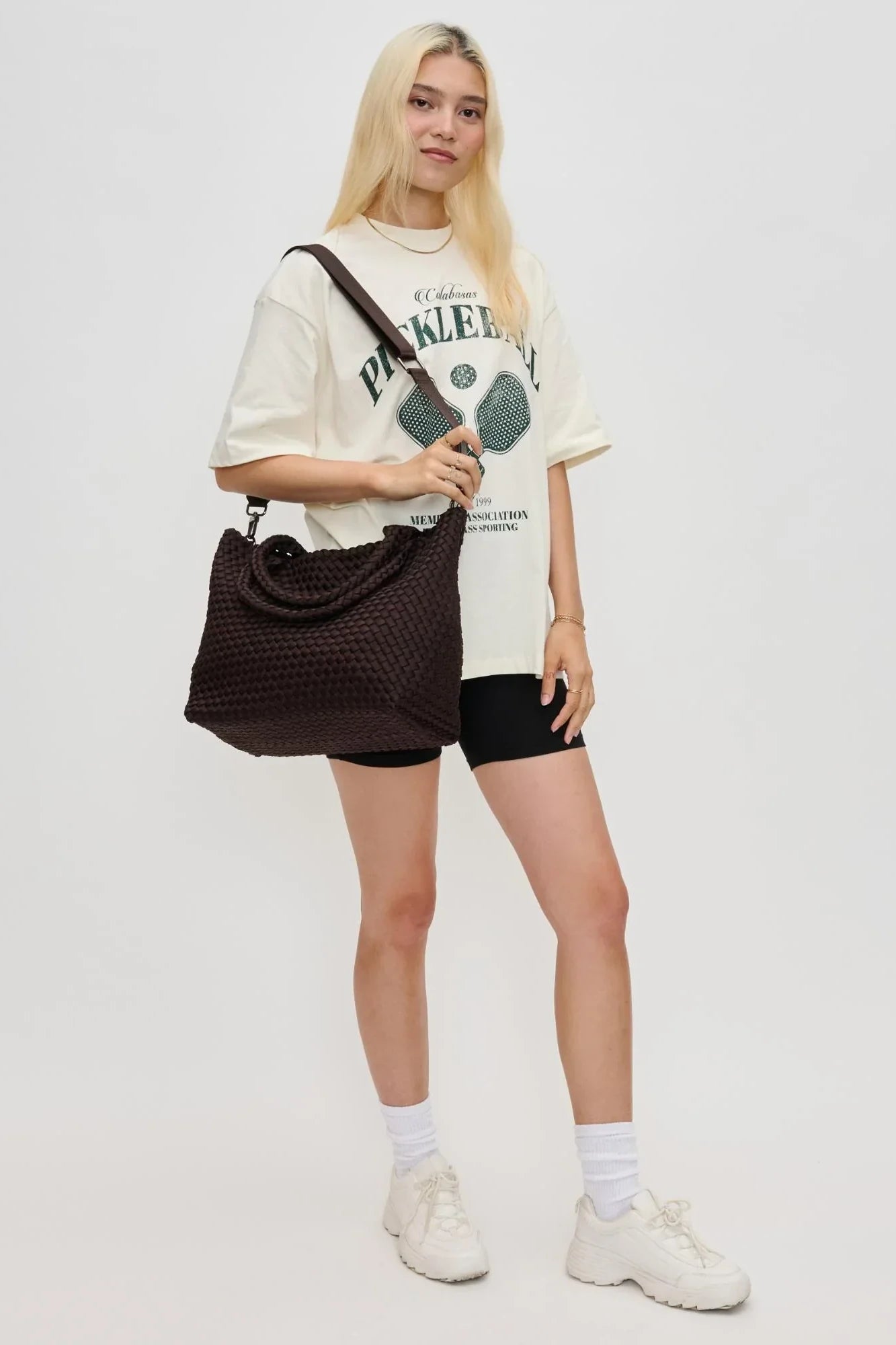 - Exterior Details: Woven, Handle Drop 7", Adjustable/ detachable shoulder strap 18"-29"
