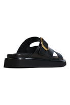 - Cross-over slide with adjustable instep strap & Soft brushed gold feature metal buckle