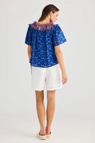Soliel Top | Blue Mosaic Print