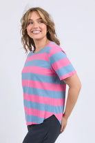 Spritz Stripe S/S Tee | Dusk Blue & Aurora Pink Stripe