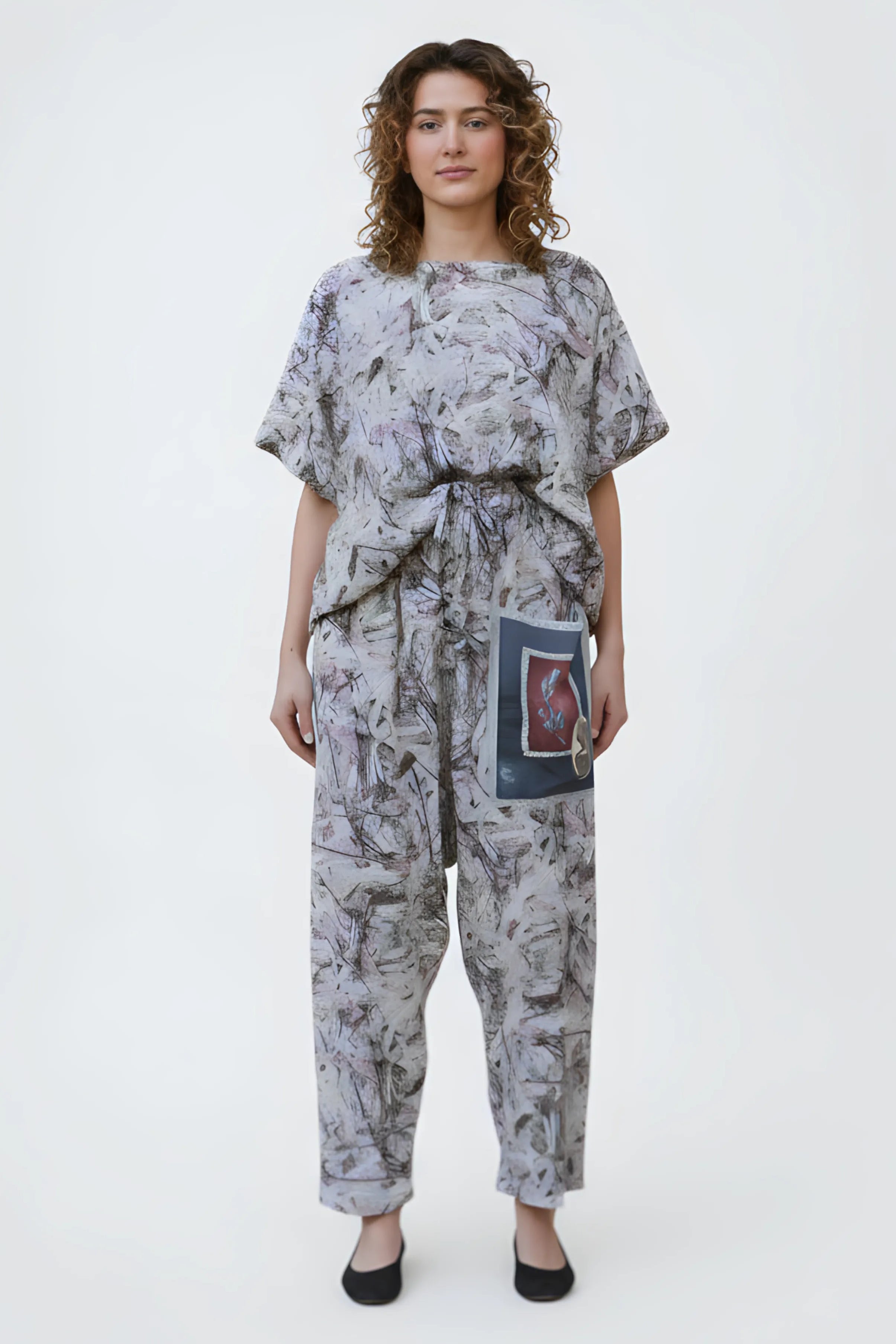 The Toam Pants balance comfort and style with a relaxed, easy-wear cut. Featuring a soft drape and tapered ankle, they’re perfect for pairing with loose tops or tucked-in blouses. The statement print brings a playful, artistic touch, making these pants as eye-catching as they are comfortable.