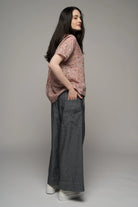 This linen top has a delicate boat neckline and relaxed drop shoulder sleeves. Has a subtle dropped back hem and shoulder with a feature pleat mid shoulders. Made in Australia.