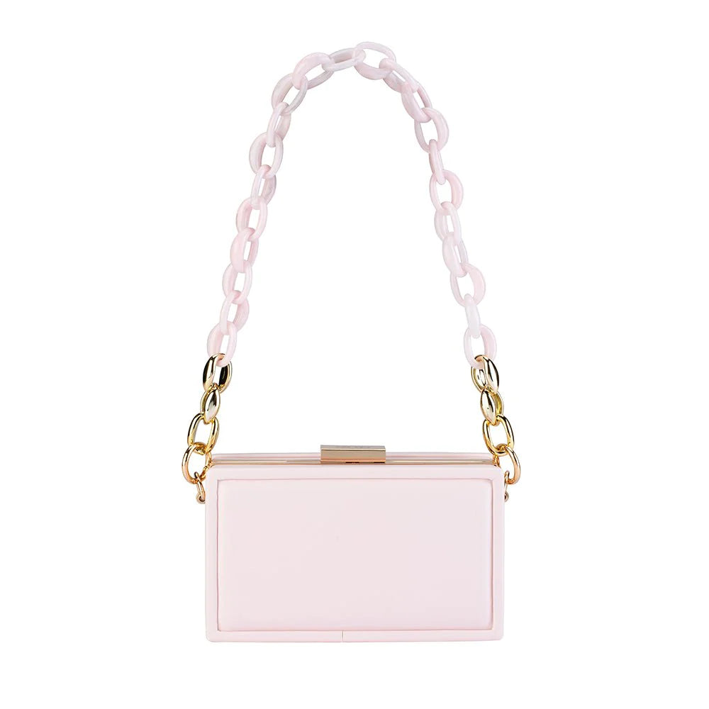 The Charlotte Box Bag is the perfect accessory for your day to night looks. Its boxy silhouette is crafted from premium vegan leather and accented with a matching acrylic chain.