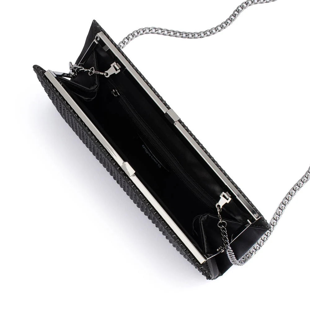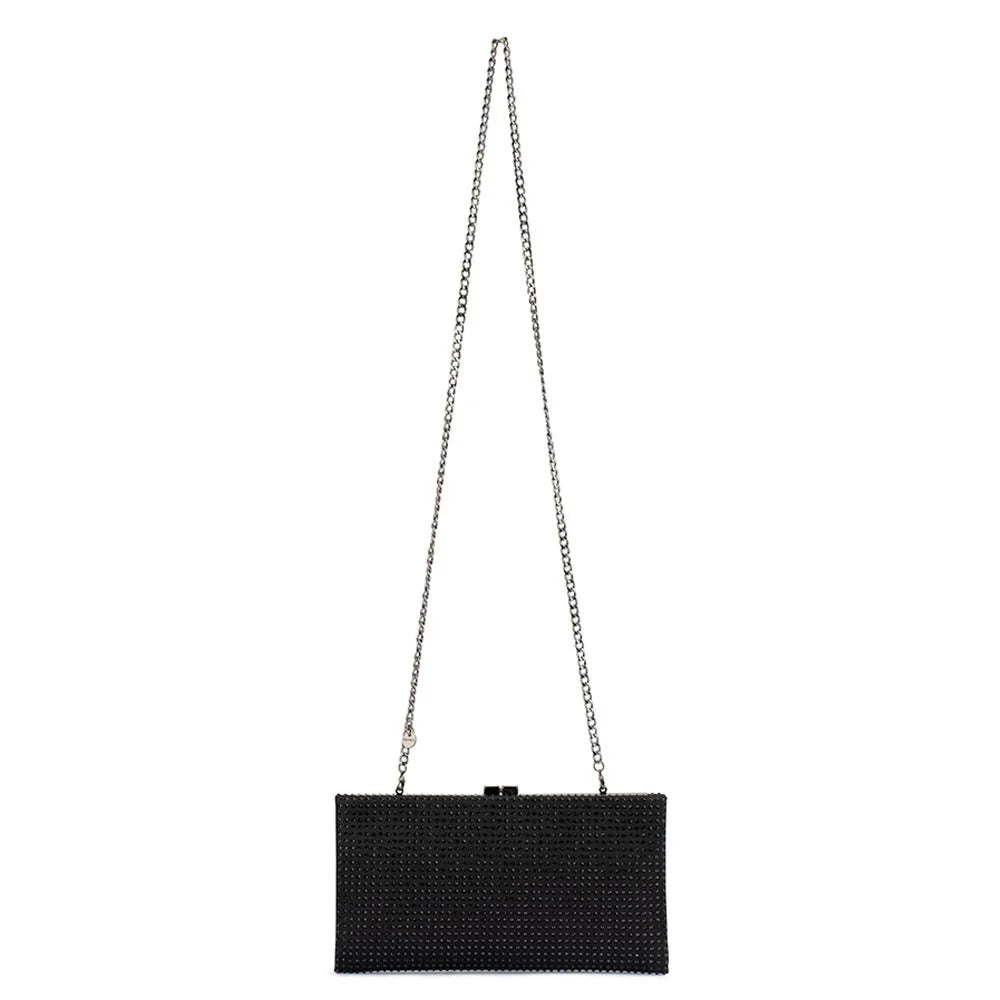 With its slim profile, the Gabriela Crystal clutch is the perfect accent to any evening look. The crystals are super sparkly and the slender shape fits comfortably in the palm of your hand. Wear it as a clutch by tucking the shoulder chain inside the bag or wear it as a shoulder bag for those hands free moments.