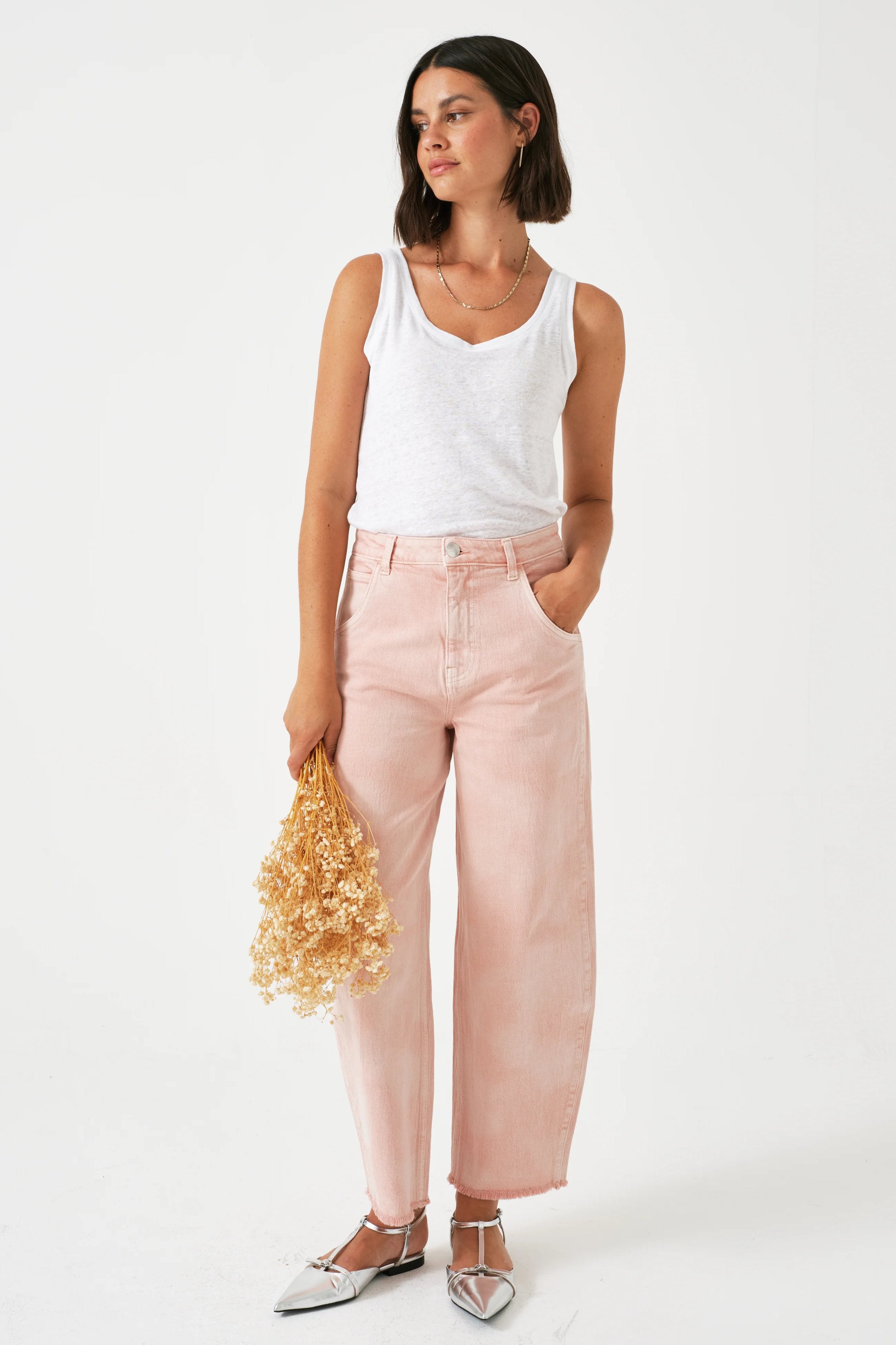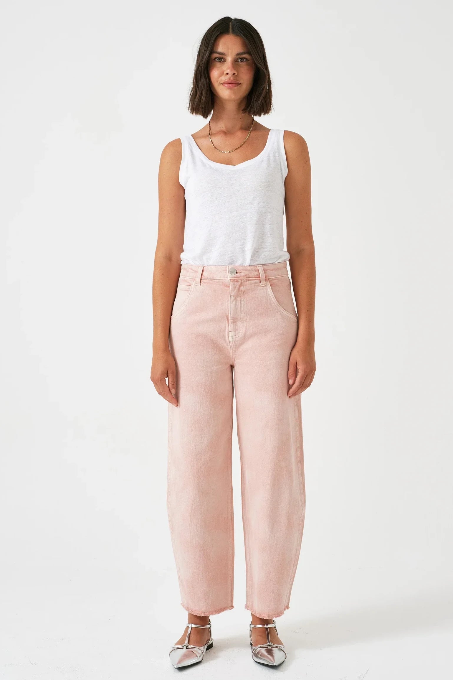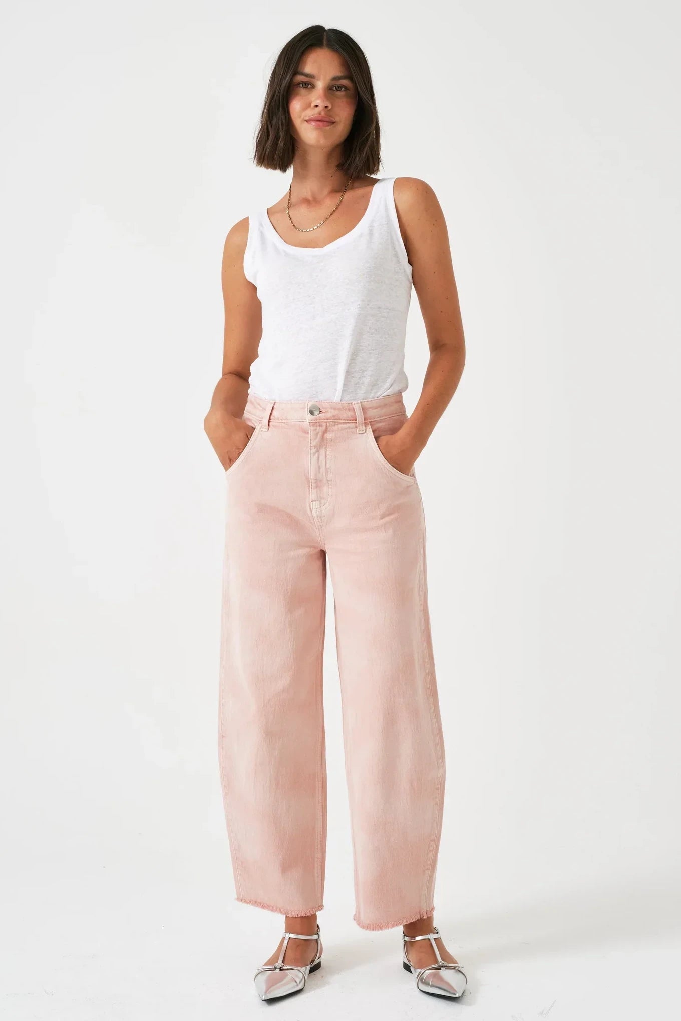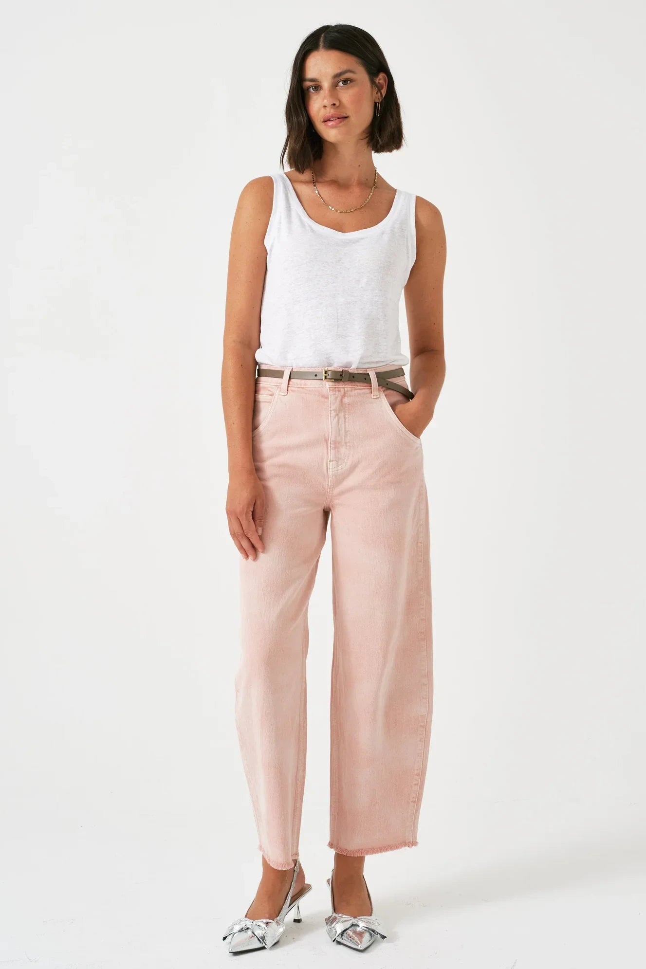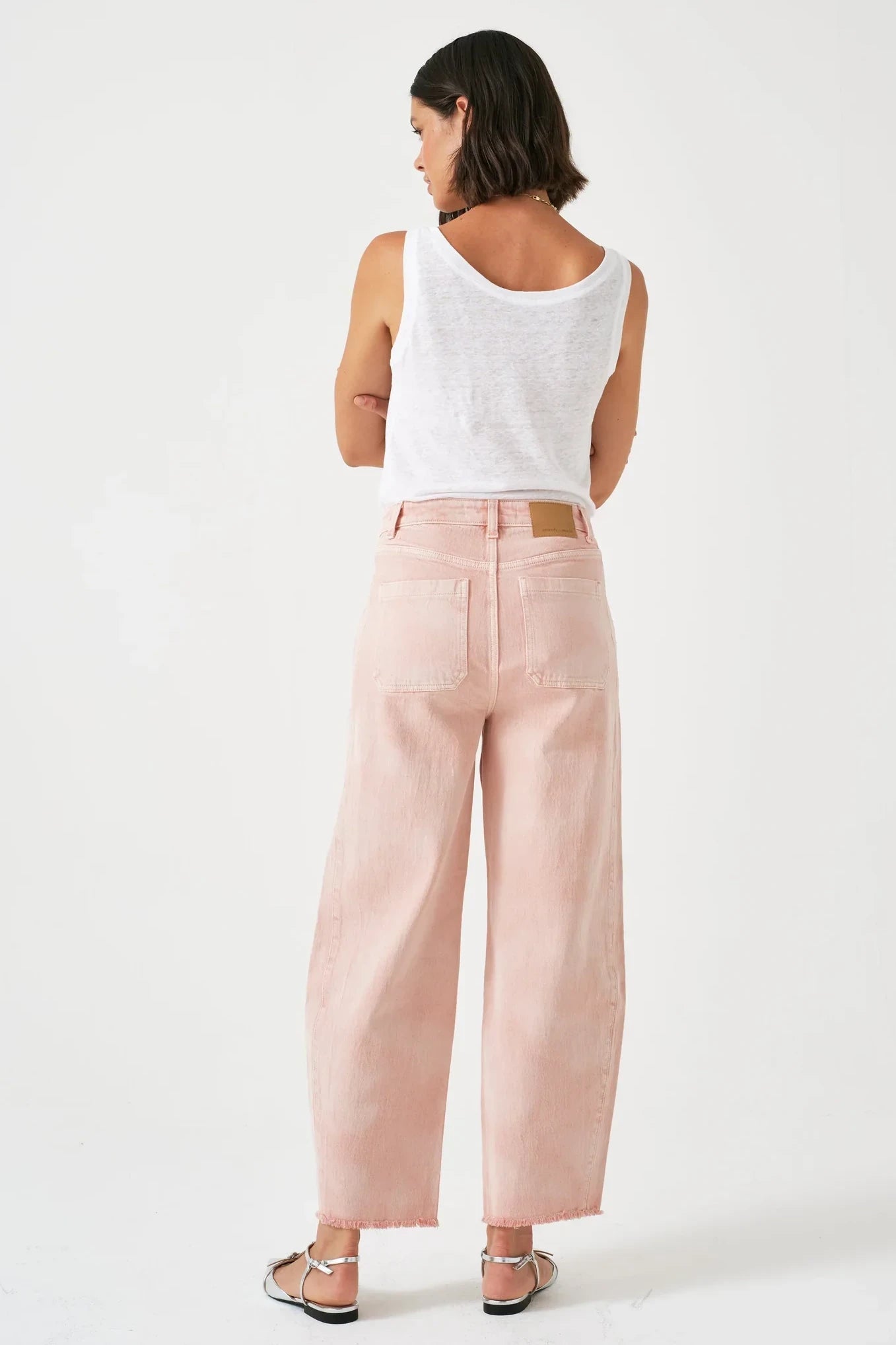 Freshen up your denim collection with a fun carpenter style barrel leg jean.