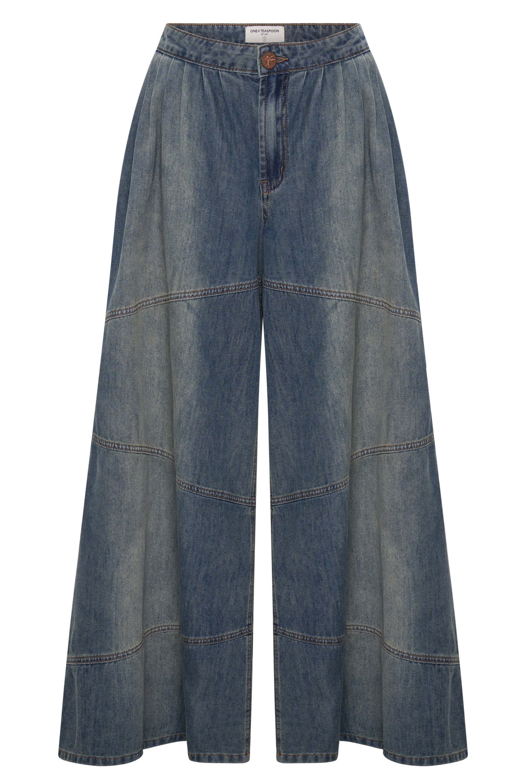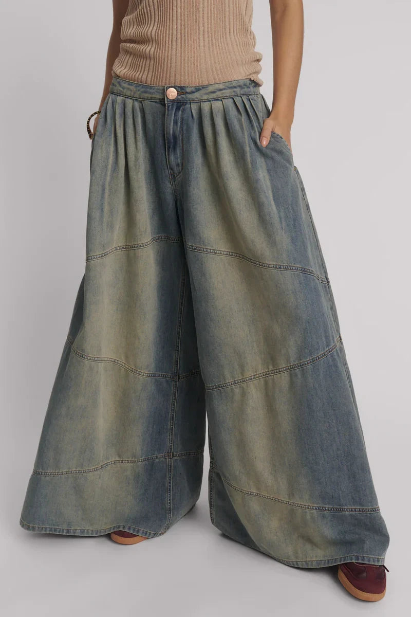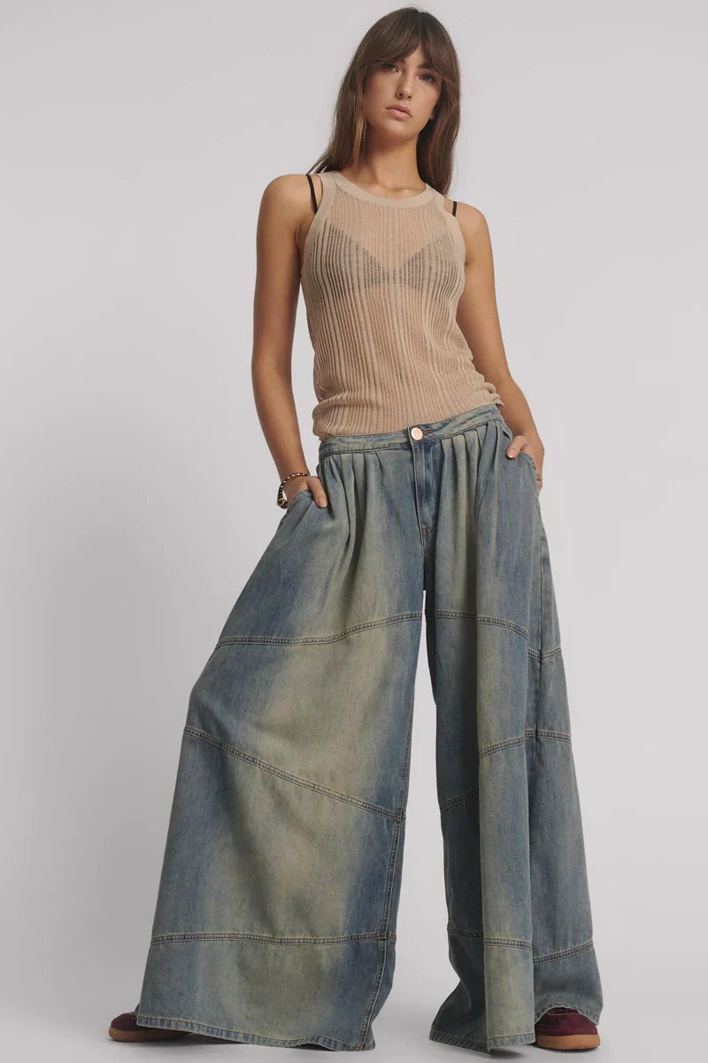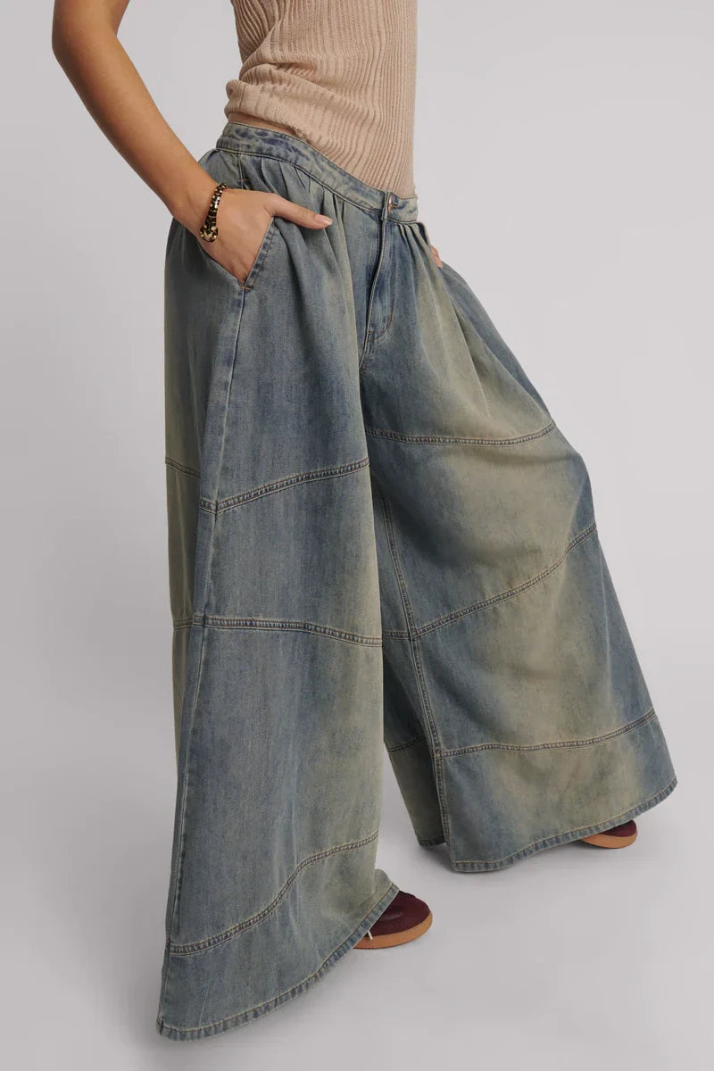 Daddios Low Waist Super Wide Leg Denim Jeans | Blue Sand