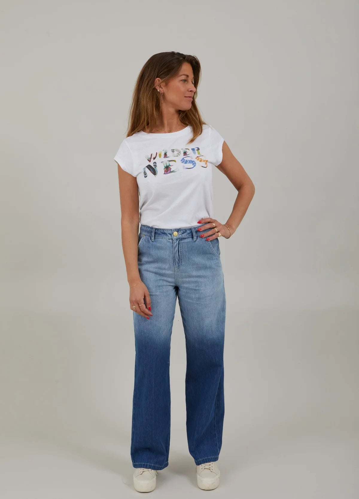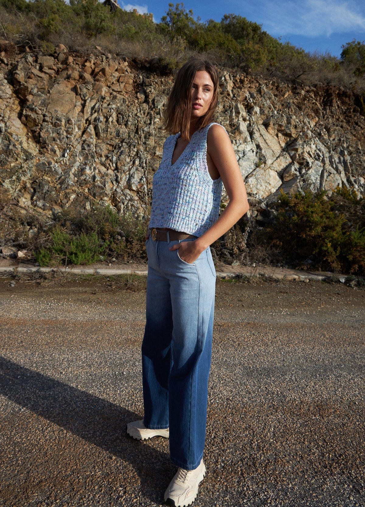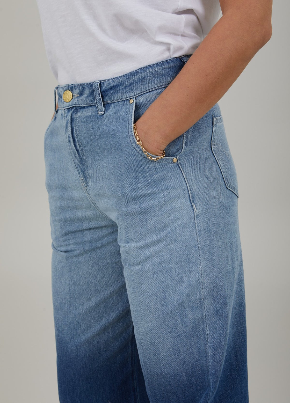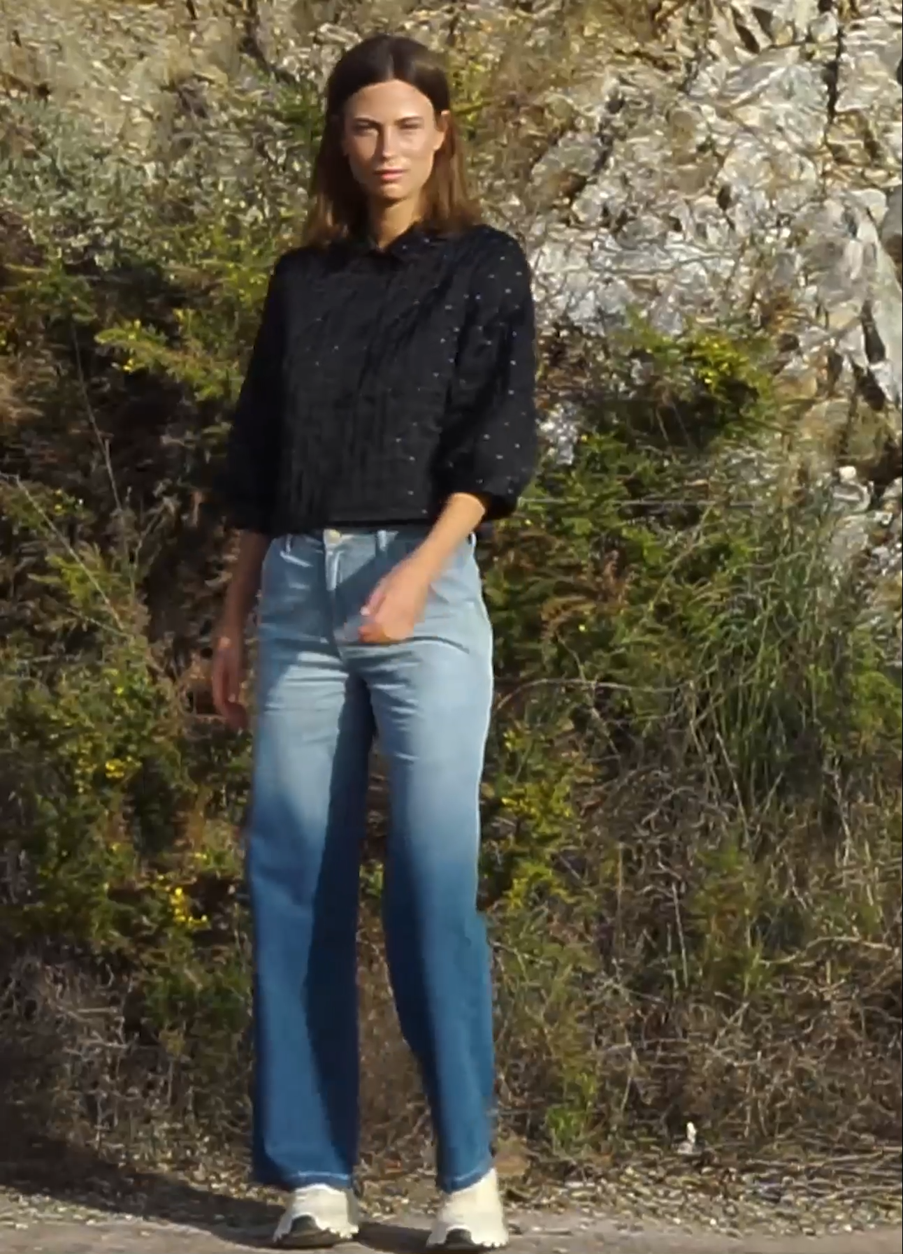 High-waisted jeans in Petra fit with back and front pockets, belt loops and invisible zip. Style with a top, t-shirt or knitwear.