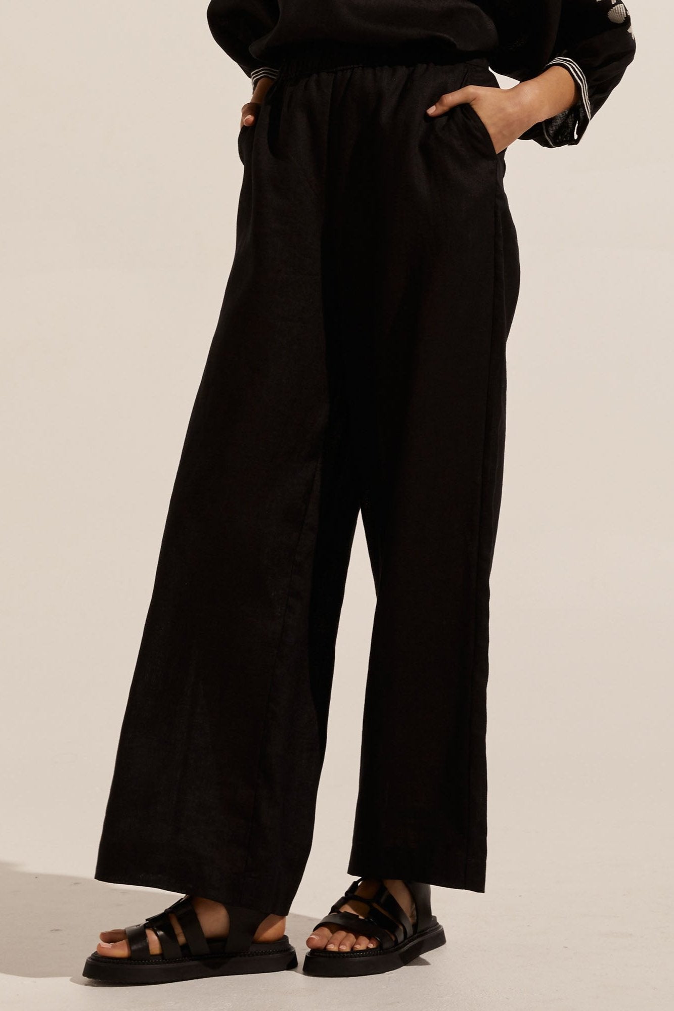 Wide leg and full length make for a winning combination in this chic yet effortless pant. Crafted in quality linen with a softly elasticated waist these pants create a stylish silhouette whilst offering the comfort of loungewear. Side pockets are a welcome feature. From casual everyday looks to pairing with a linen blazer the merit is an investment-worthy piece.