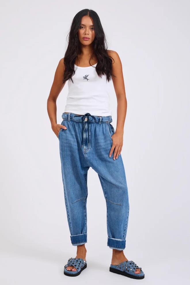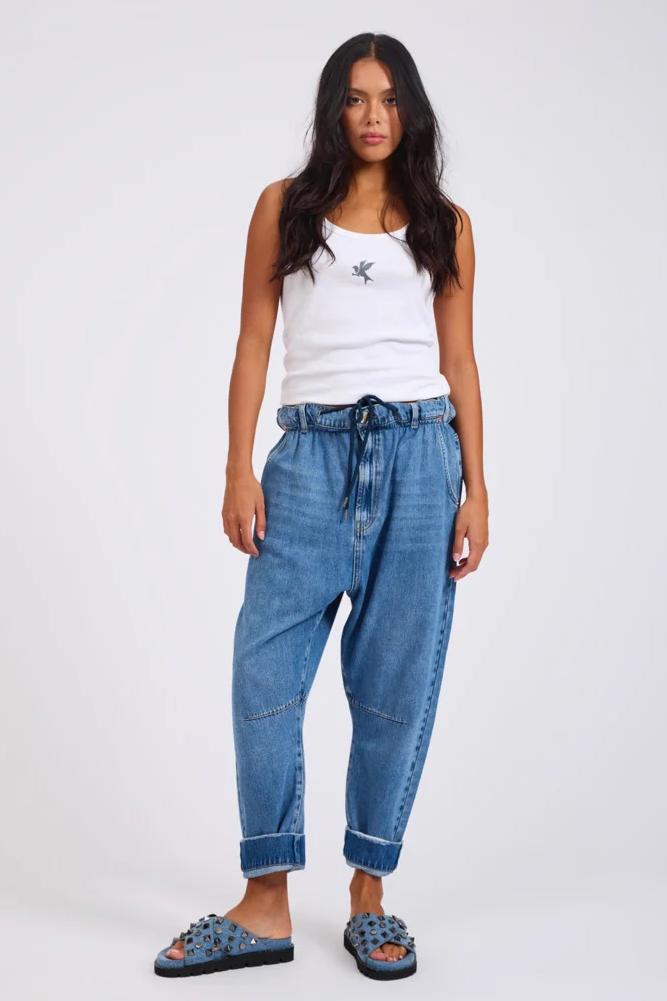Outcasts Low Waist Drop Crotch Harem Denim Jeans | Bright Blue