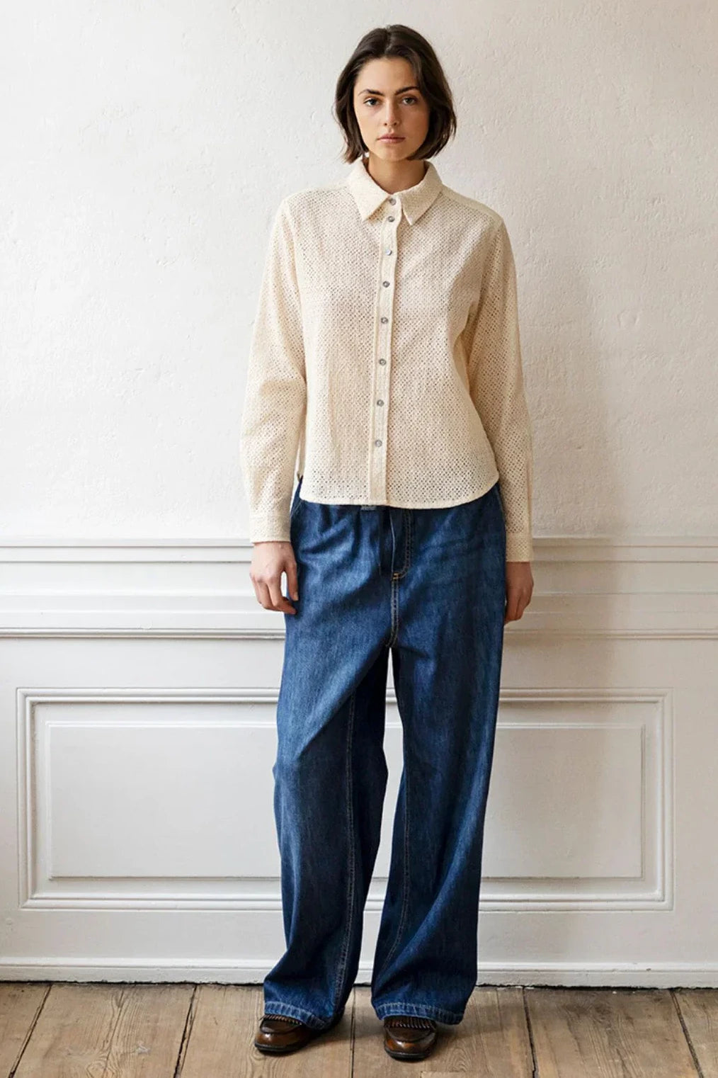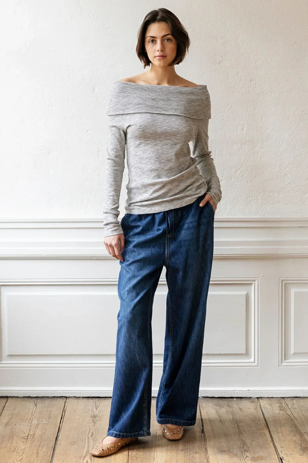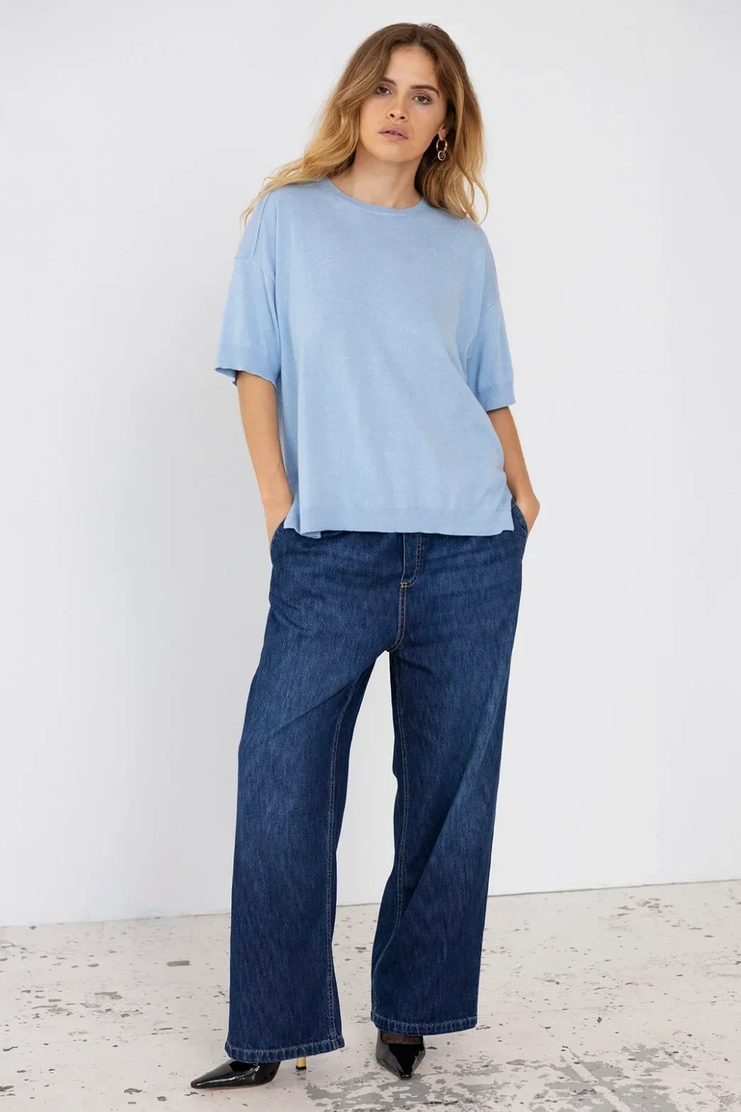 POLLY pants are our popular PJ Pants in a super soft organic cotton denim. The pants have straight legs and elastic waist with tie-strings. The pants have side pockets and are super comfortable.
