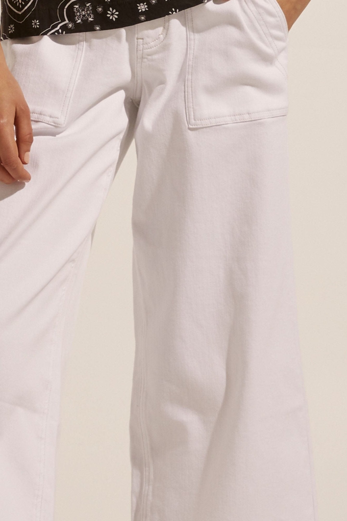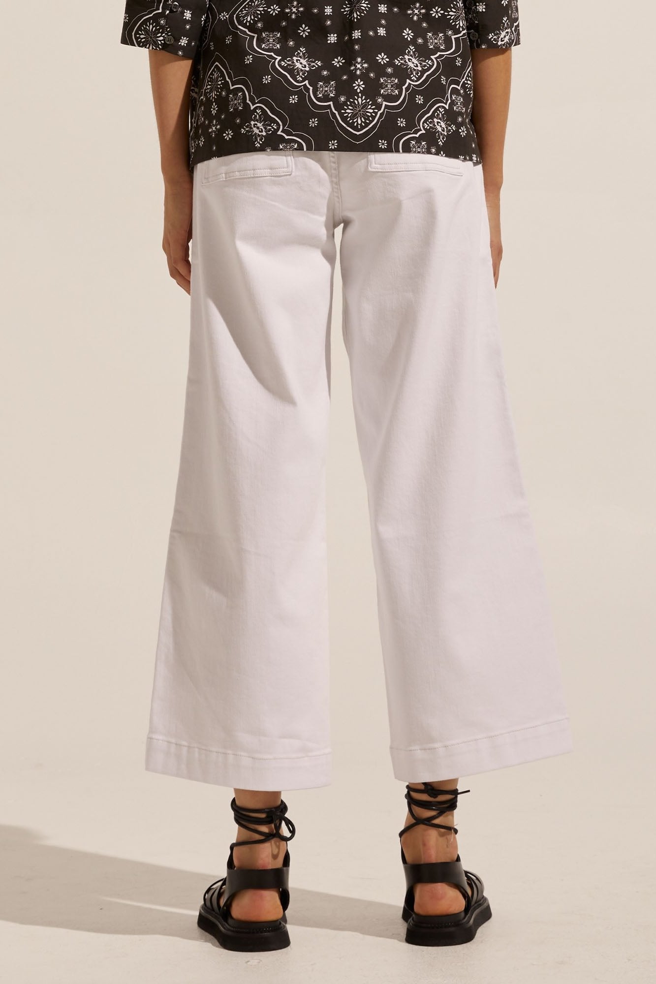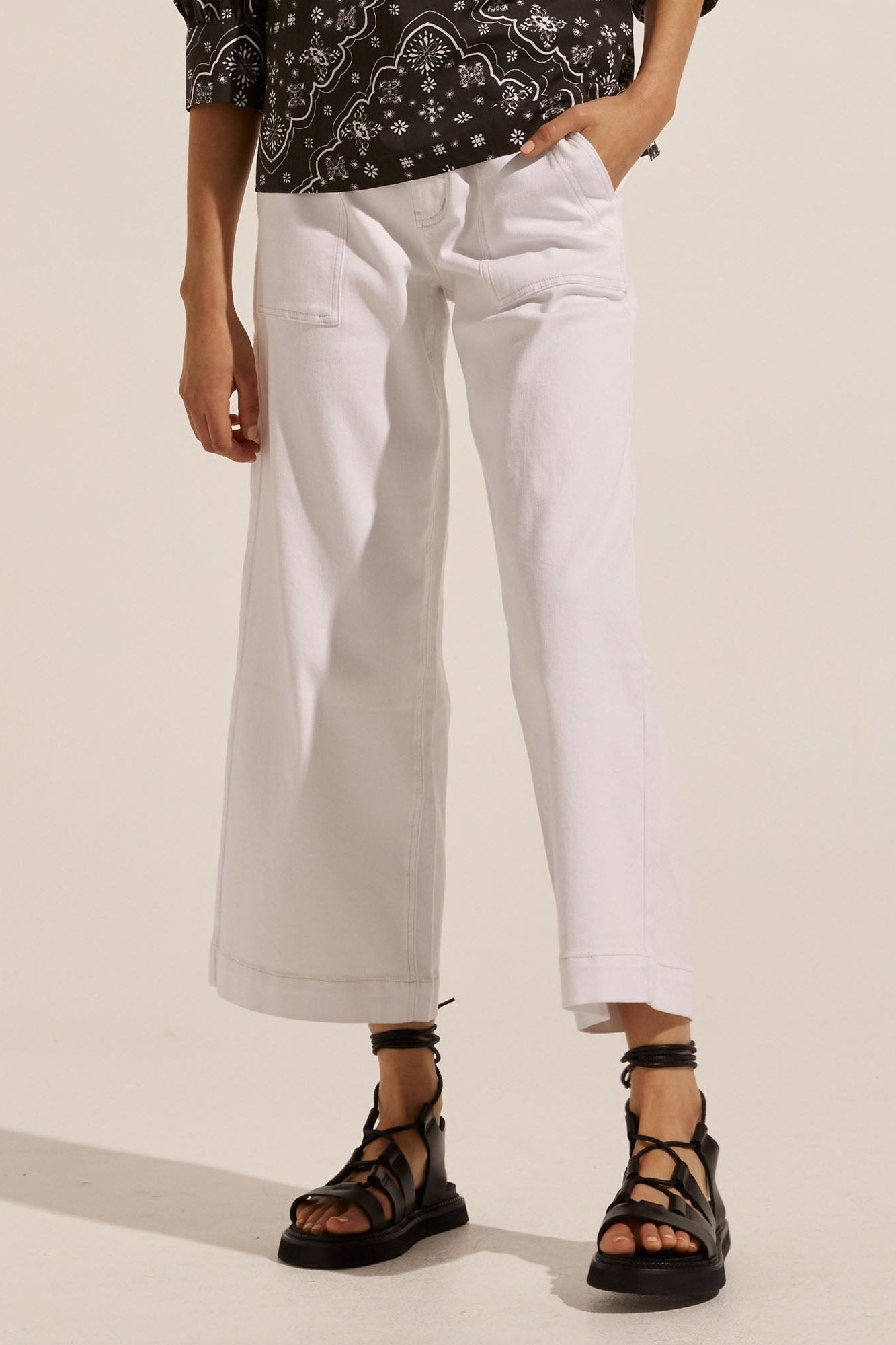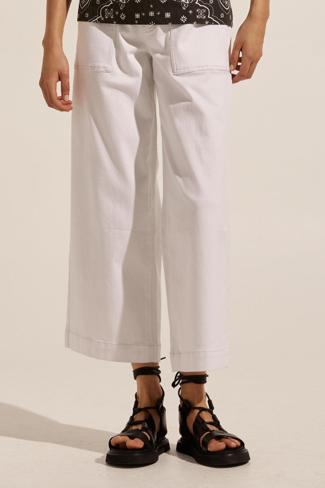 Clean and uncomplicated, the rogue jean makes a statement in their serene simplicity. The Rogue Jean takes a palazzo cut and reimagines it with a modern above-the-ankle crop. Constructed from a soft cotton infused with stretch they feel like a dream on the body. Punctuated by oversized square pockets, these jeans are as stylish as they are practical.