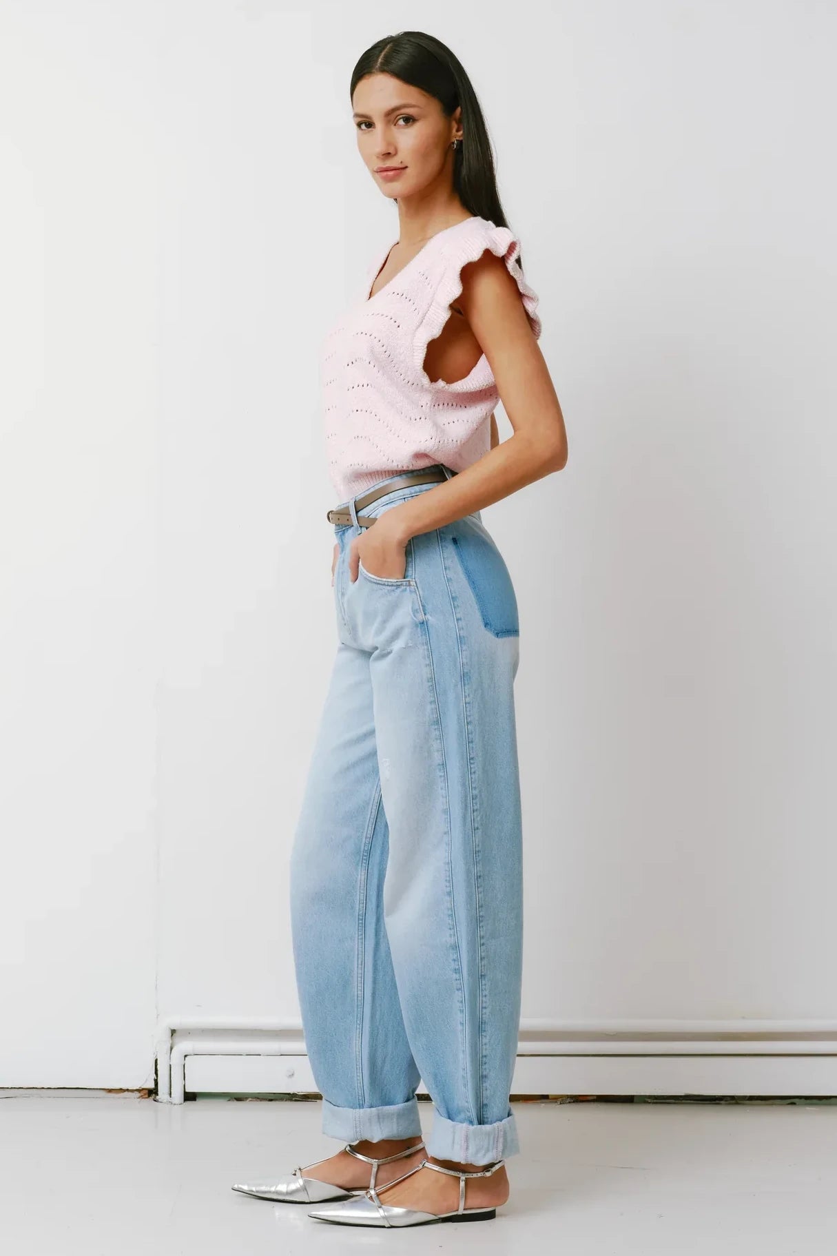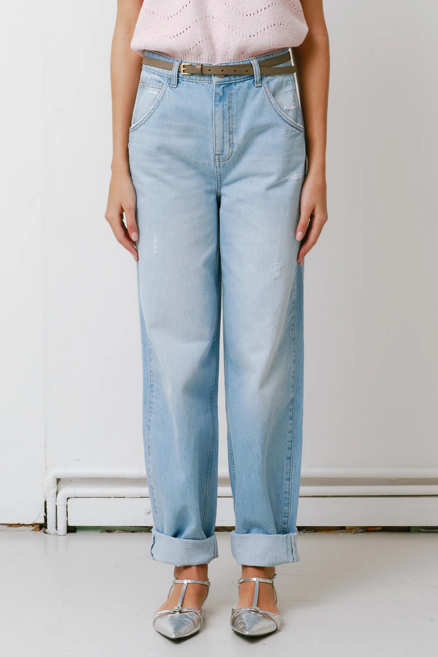 Freshen up your denim collection with a fun carpenter style barrel leg jean.