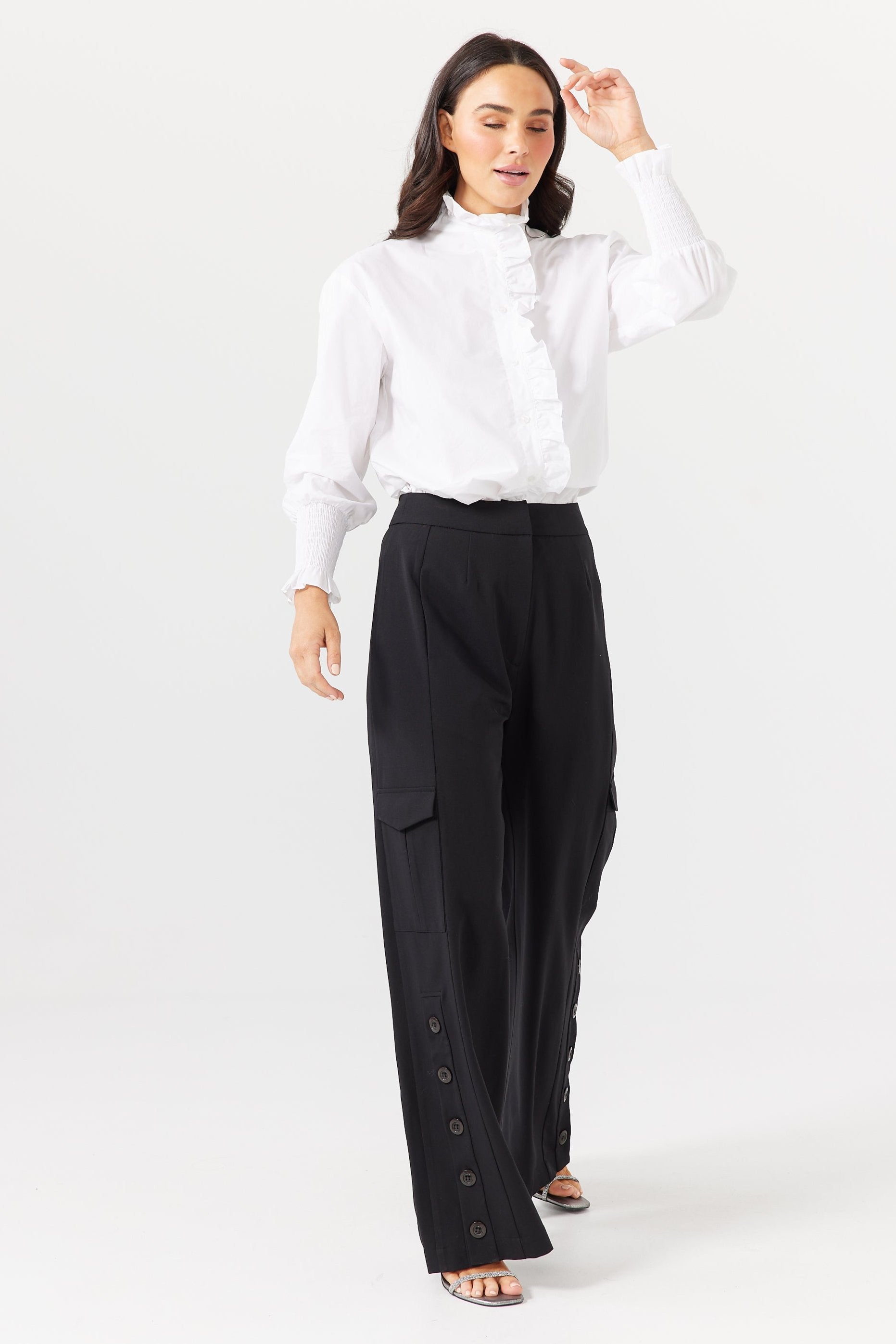 Introducing Benny - the wide leg pant everyone needs to stay on-trend this season. With interesting side panelling, complete with buttons and patch pocket feature, these beauties bring an ultra-cool utilitarian vibe to dressing. Cut from a soft suiting style fabrication, Benny is sure to be your new fave go-to piece to suit all your winter styling needs!