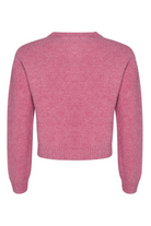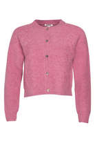 The Bacall Cardi by Loobie's Story is a merino cropped cardi with contrast crochet-embellished side seams, with soft fringed cable detail and mother of pearl buttons. Also Available in Oatmeal.