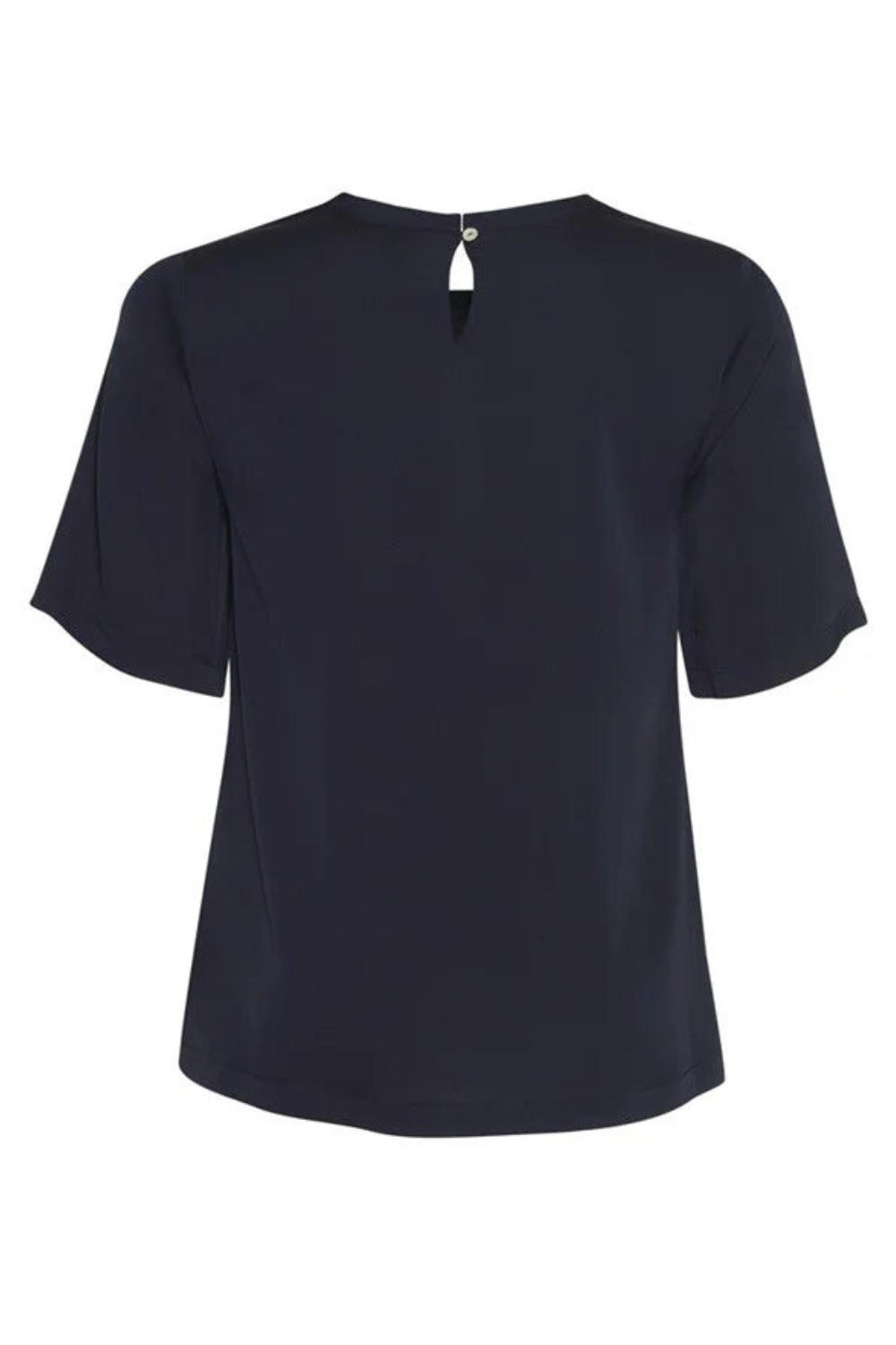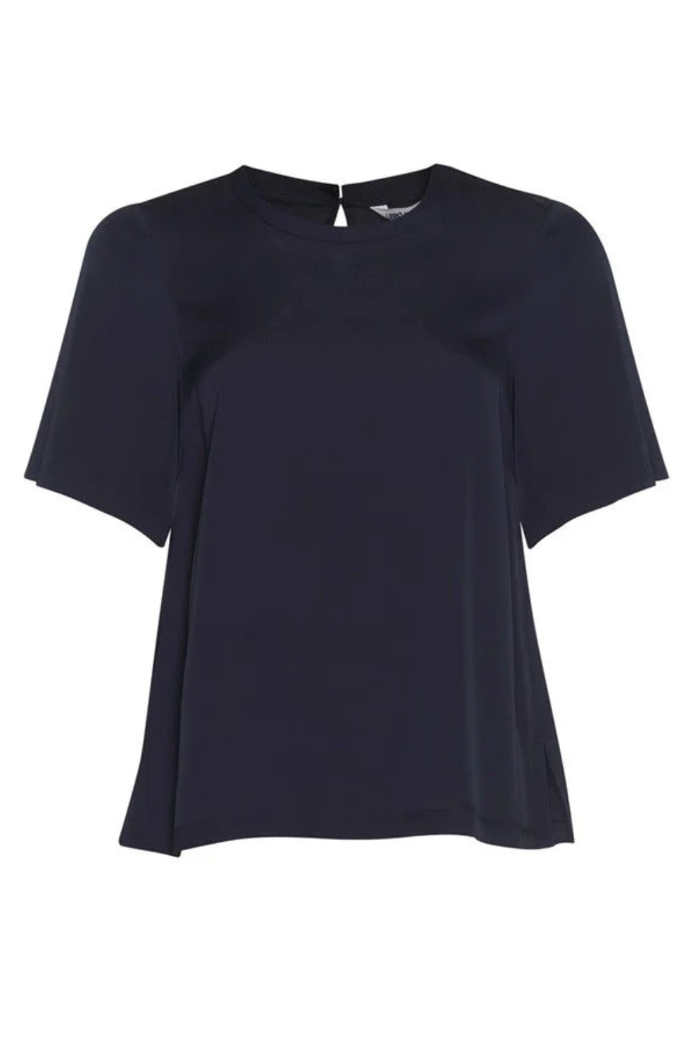 Luxe stretch silk satin tee with a round neckband and square hem with side splits