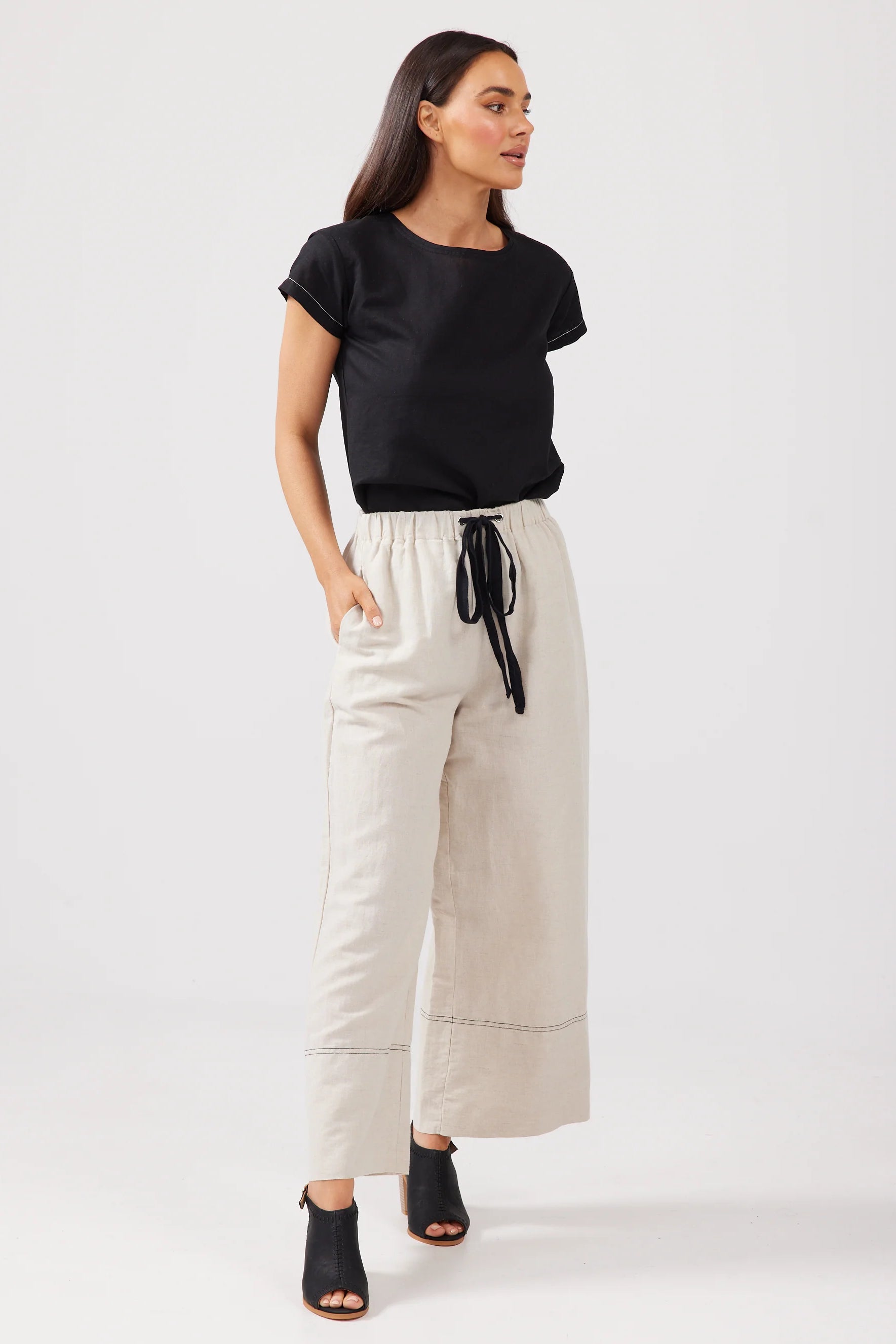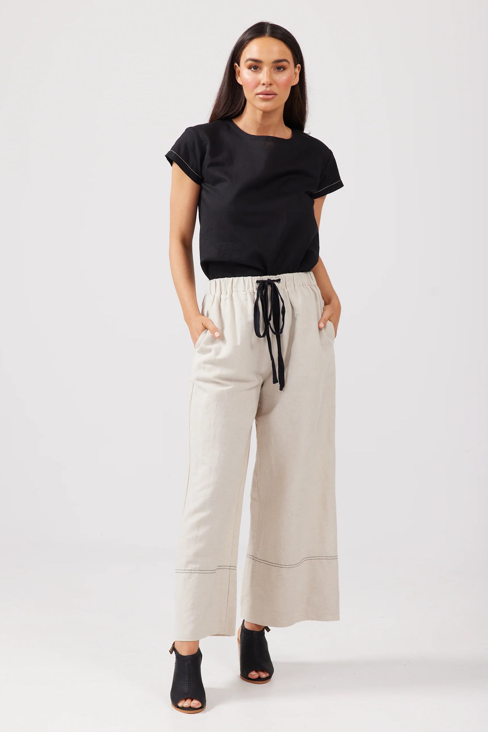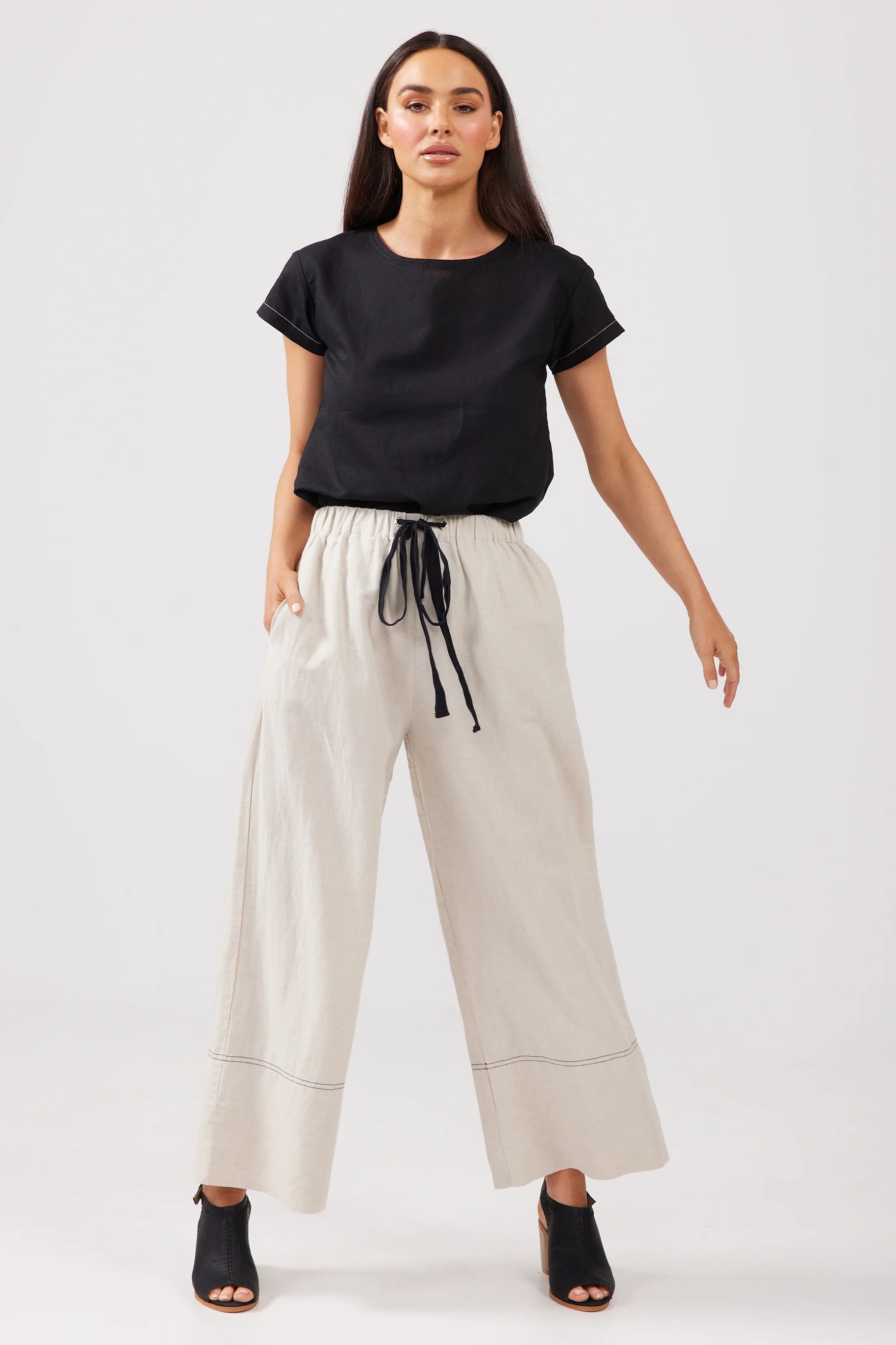 Designed with simple, elegant style in mind, the Elevate Pants are true to their name. Elevating your outfit with a flattering longline shape and wide leg opening, they pair perfectly with a heel for a dressy daytime look. Style back with your favourite basic tees and shirts tucked in, and be sure to feature the cool contrasting waist tie front and centre!