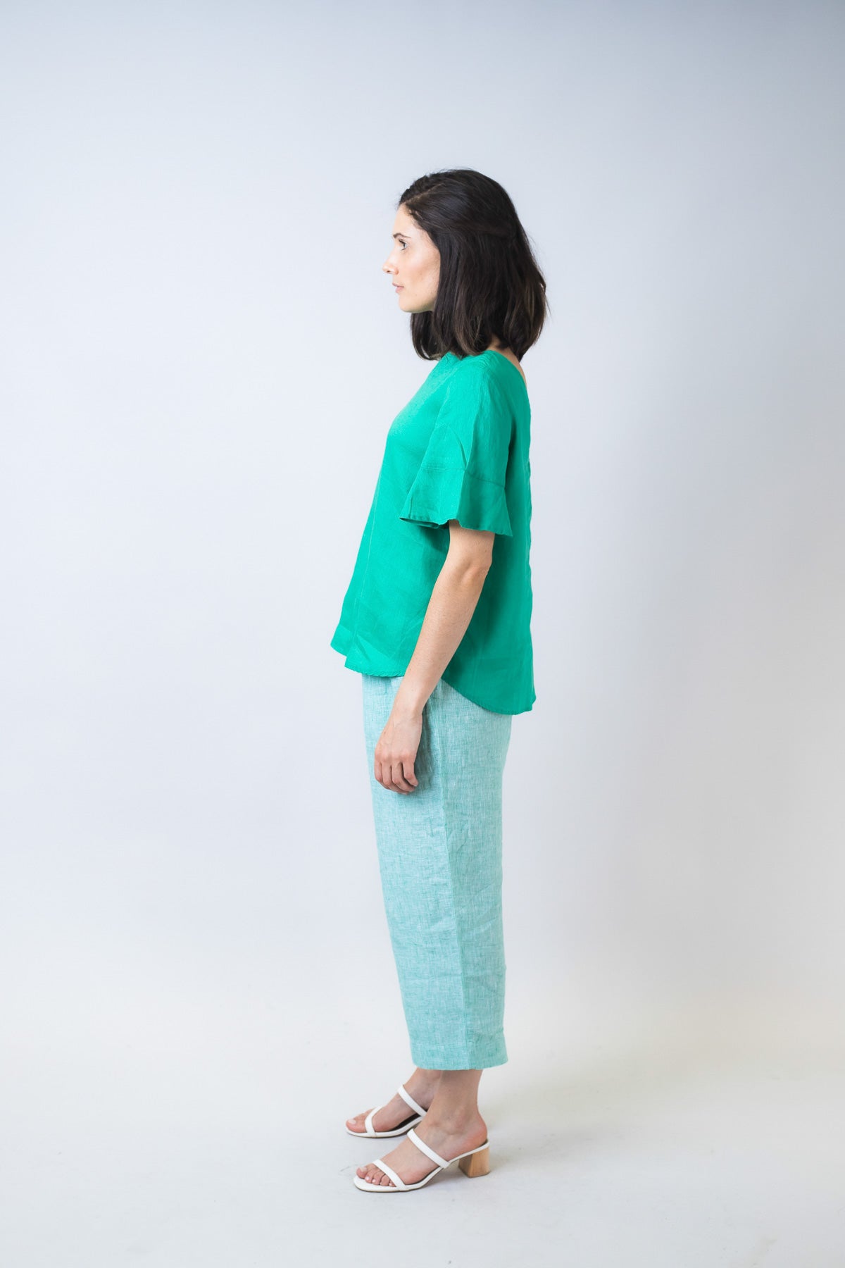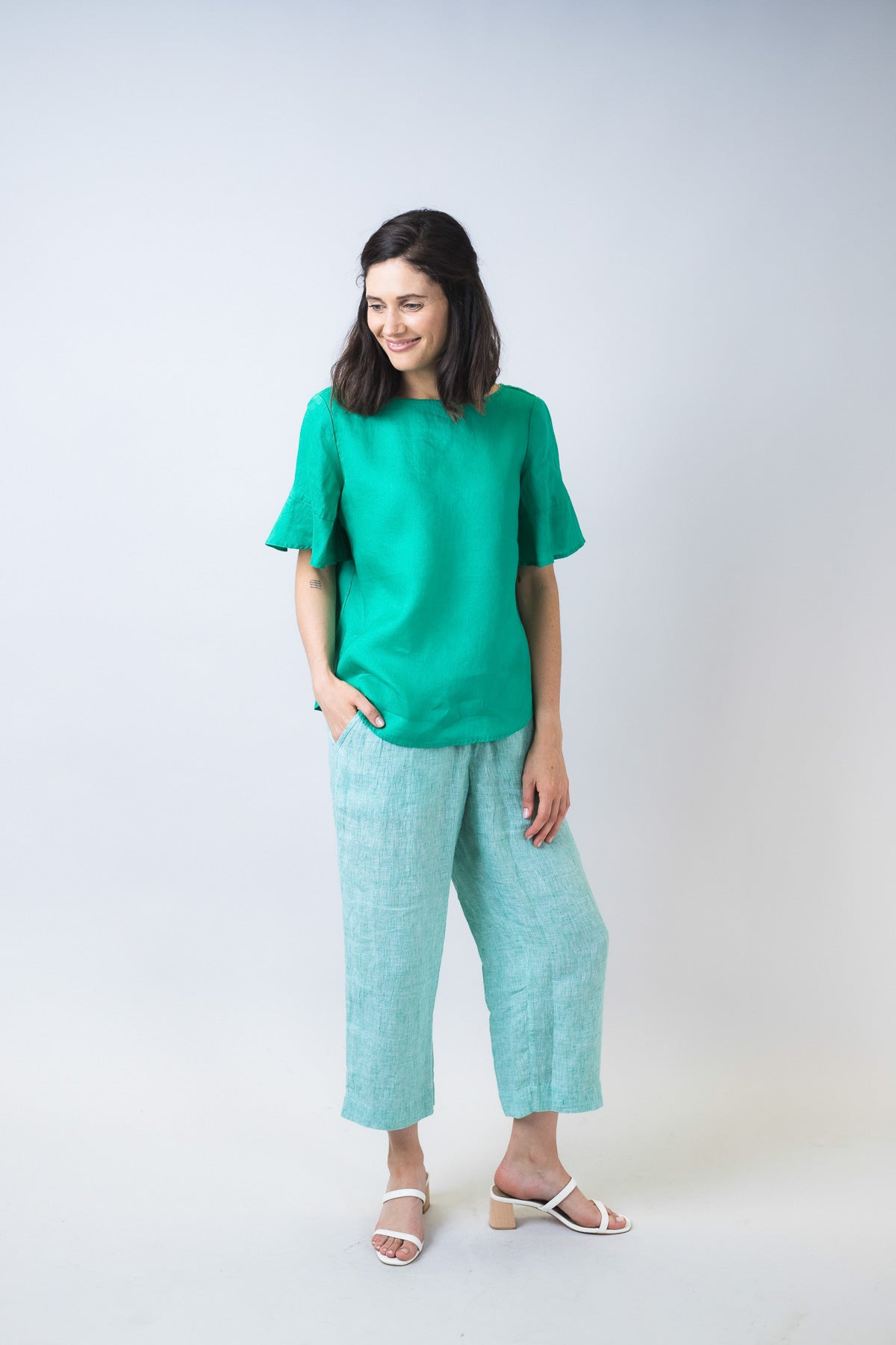 For relaxed, yet sophisticated style, look no further than the Maya pants in Green Houndstooth. In on-trend 7/8 length, with elasticated waist and side pockets, these pants strike the perfect balance between style and comfort. Lightweight and breathable, these linen pants are the perfect travel companion, and the ideal addition to your suitcase for next holiday. Style with sneakers and a T-shirt for a busy day of sightseeing, or with your favourite sandals and linen singlet for sipping cocktails by the pool.