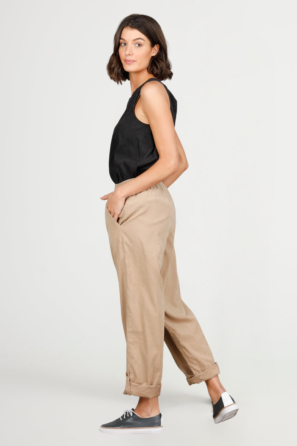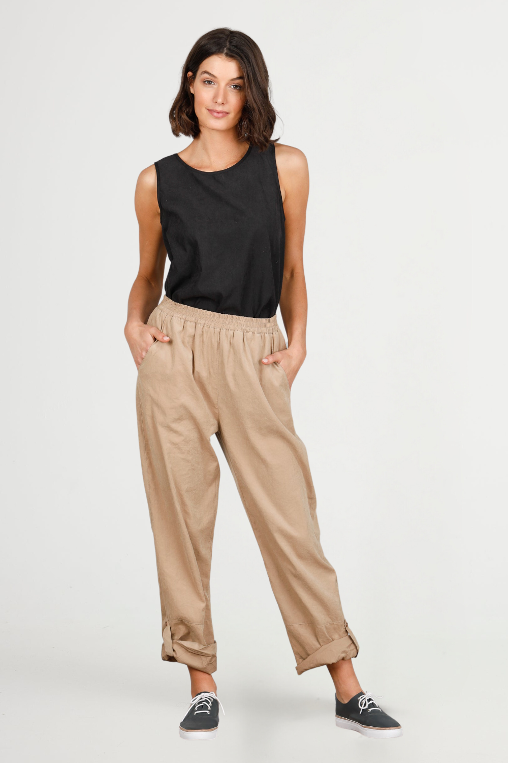 Feel wonderful in the Wonderland Pants from Brave+True. This ankle-revealing straight cut, can be worn two different ways. Fasten the ankle tab and team with a pair of sneakers for a casual-chic look, or wear them undone for a full-length formal look.
