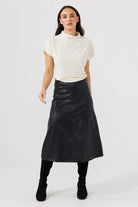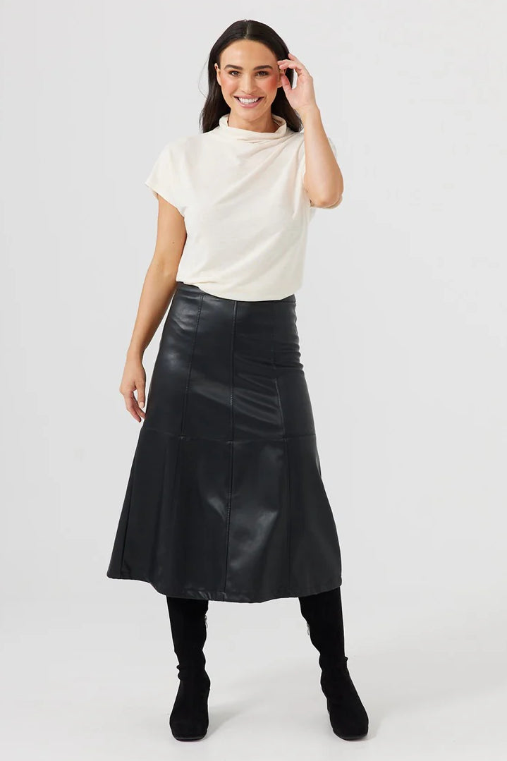Flattering through the hips, and flounce at the hem, the Matrix Midi Skirt is the ultimate winter styling piece for the fashion forward B+T woman. Featuring seam panelling and an exposed zip, this on trend piece styles perfectly with a knee-high boot on those chilly days, or a strappy heel for a dressier approach.
