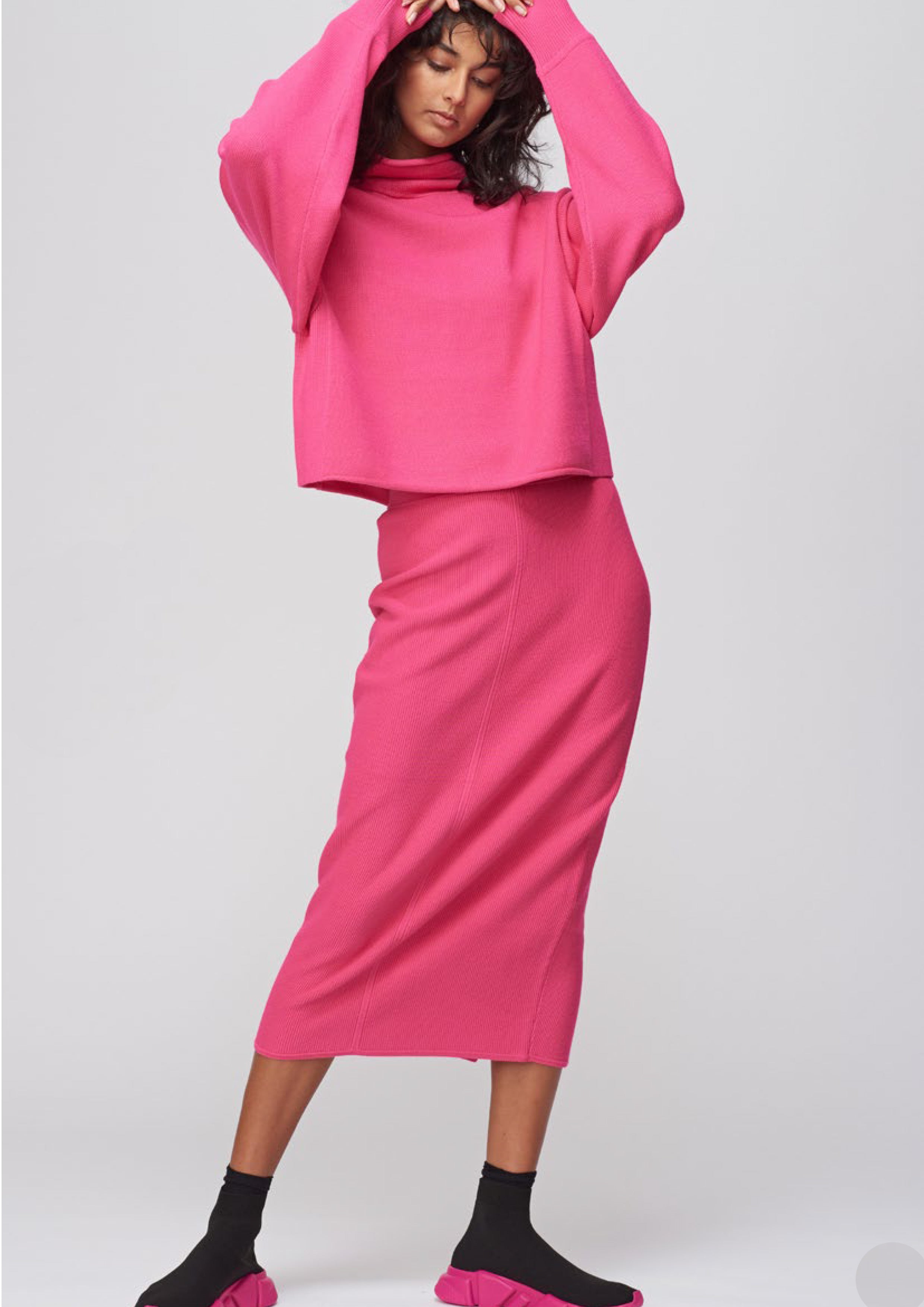 The Ribbed Knit Skirt is part of SGS' Curated Banana Blue's Winter Collection. Selected to become part of your Essential's list, this skirt is the perfect piece to add shape and style to any outfits. Available in a striking pink and classic black featuring a full elastic waist band for comfort. Pair with a long boot and one of the Banana Blue tunics.