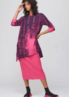 Model pairs back with Ribbed Knit Skirt in Bougainvillea (also available in black).