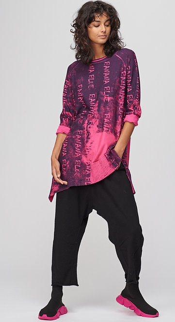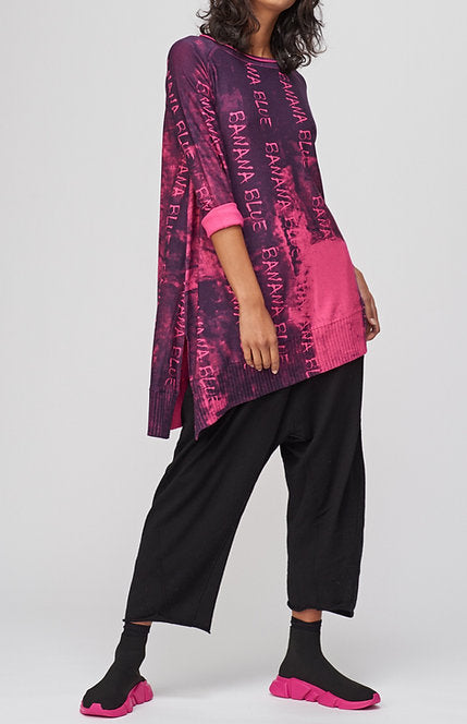 The Bougainvillea Graffiti Print Knit is part of SGS' Curated Banana Blue's Winter Collection. A light - medium weight knitted tunic perfect for layering underneath a leather jacket or as is. Featured in an edgy bougainvillea graffiti print this tunic flattering to most shapes and a great layering piece.