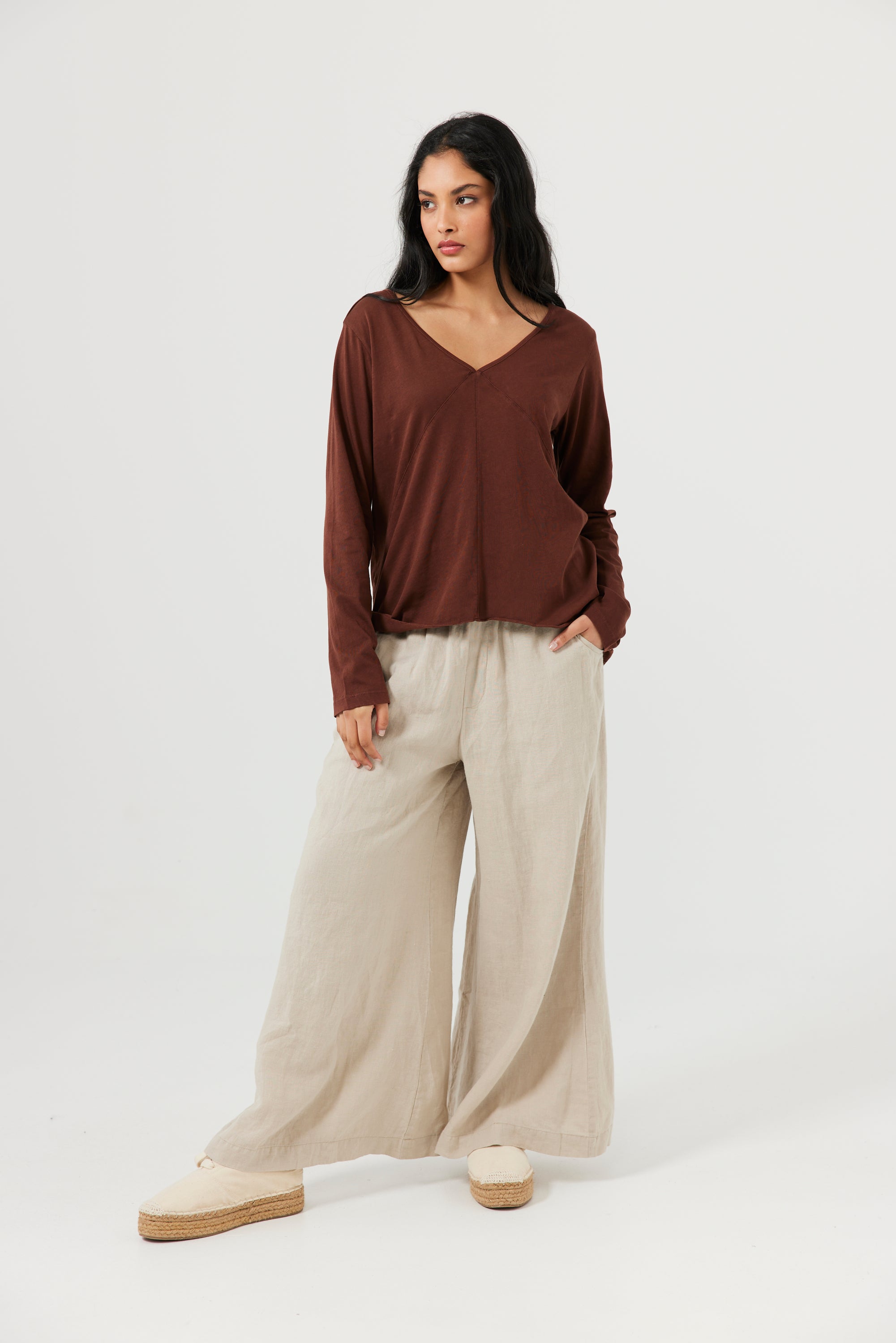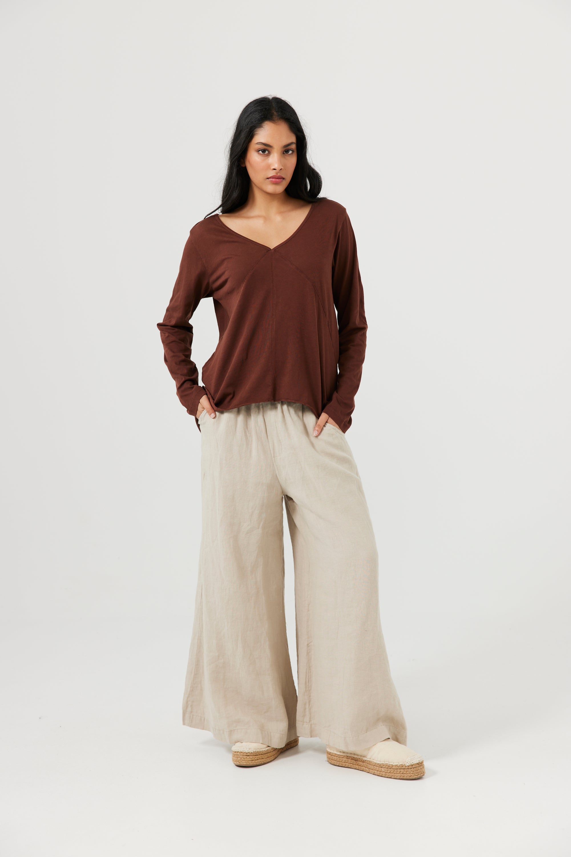 The Congo Long Sleeve Tee is a step above the rest. This elevated basic features a V-neck, panelled design lines and stylish high-low hem. Cut from a beautiful organic cotton jersey, this easy-wear tee combines simplicity, comfort and style.