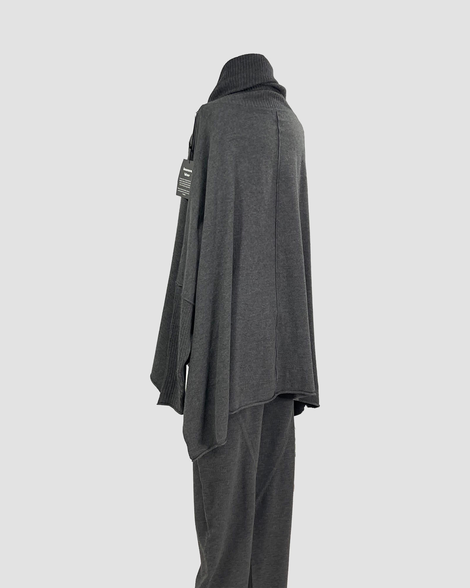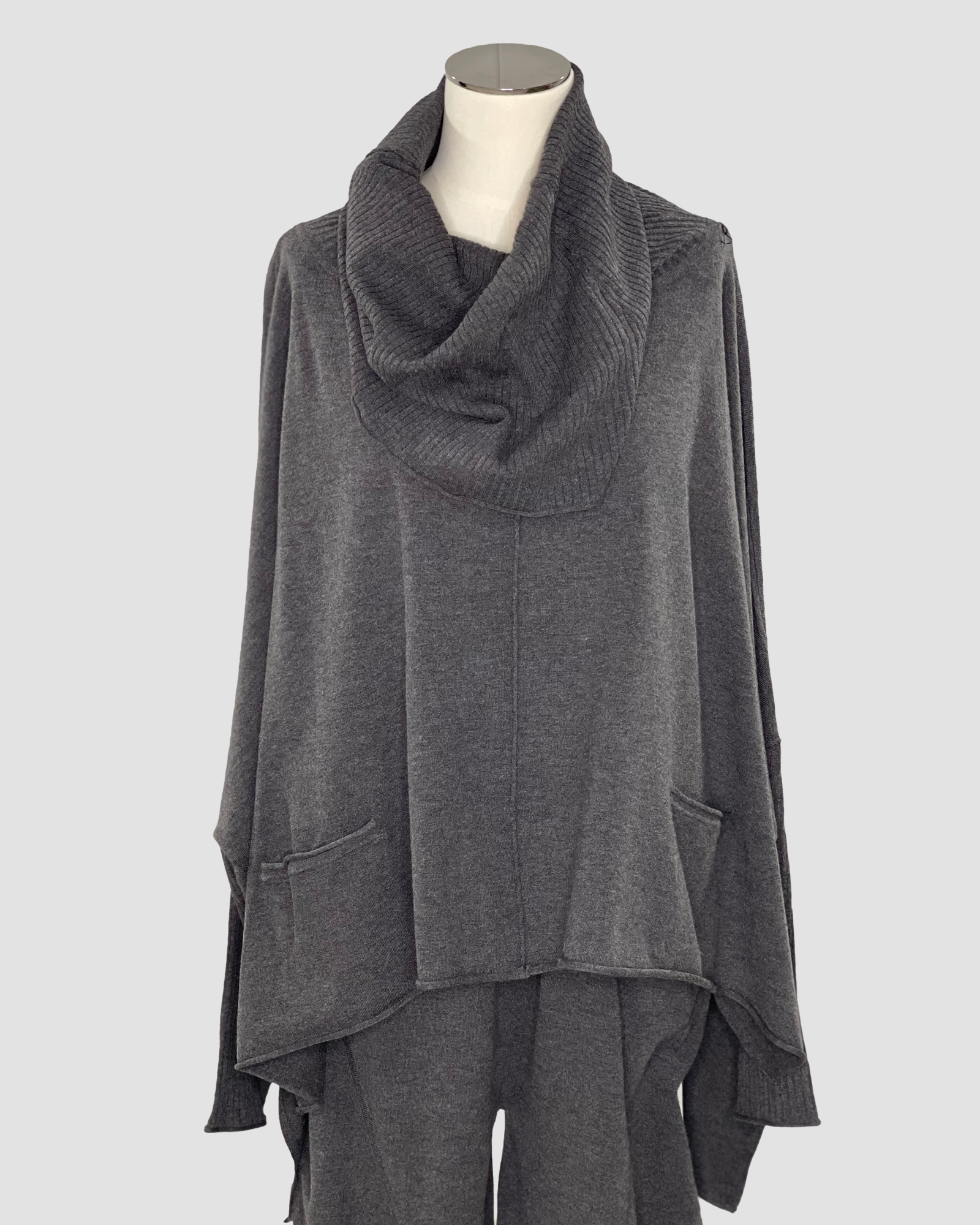 Cowl Neck Poly Voly Pullover in Dark Charcoal
