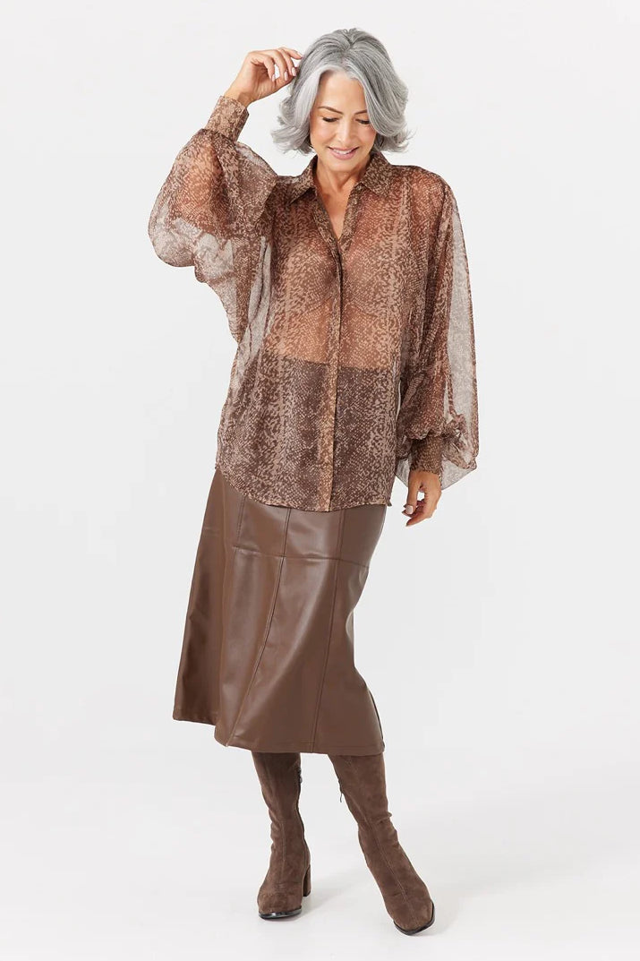 A simple oversized button-down style, the Herrera Shirt leaves all the drama to the sleeves! Perfect tucked into the Matrix Midi Skirt or left hanging over the Concrete Jungle Pants, she's the perfect way to add some excitement to your winter rotation.